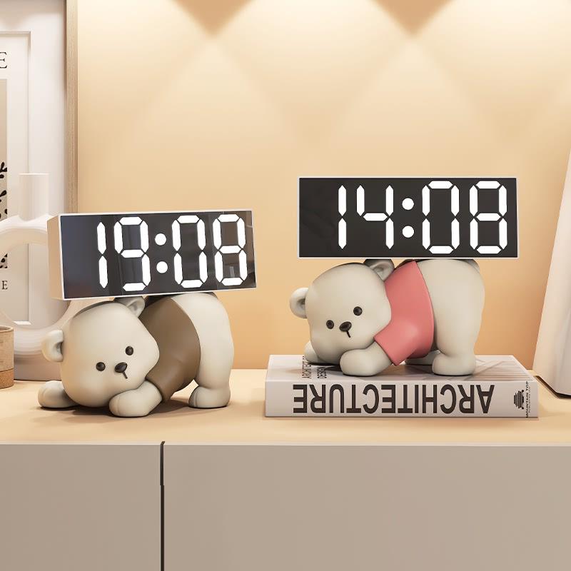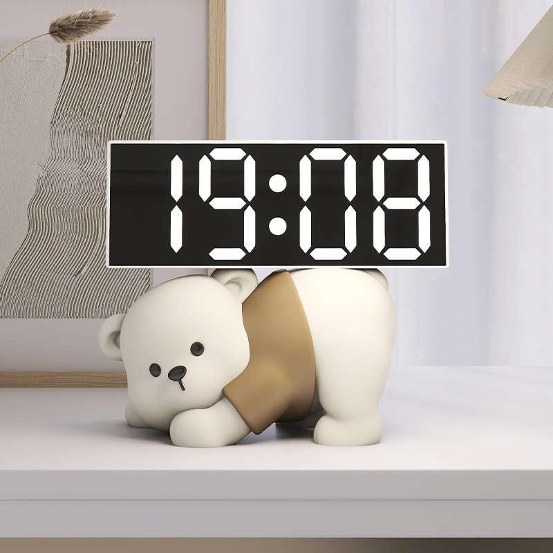 奶油风时钟摆件闹钟客厅钟表桌面装饰品创意电子钟电视柜台式摆放