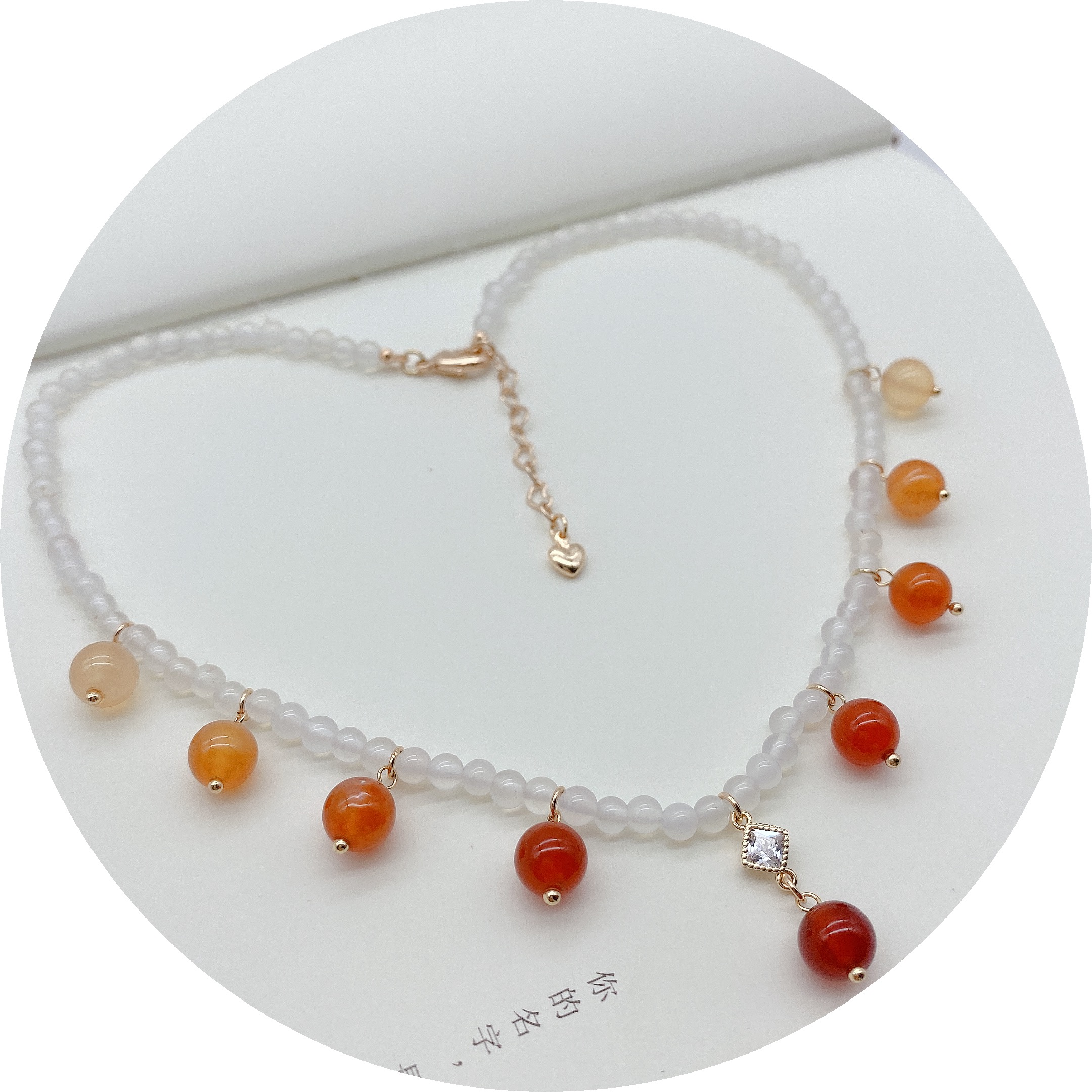 清风与酒原创设计古风天然红玛瑙软璎珞汉服配饰绿色红色项链