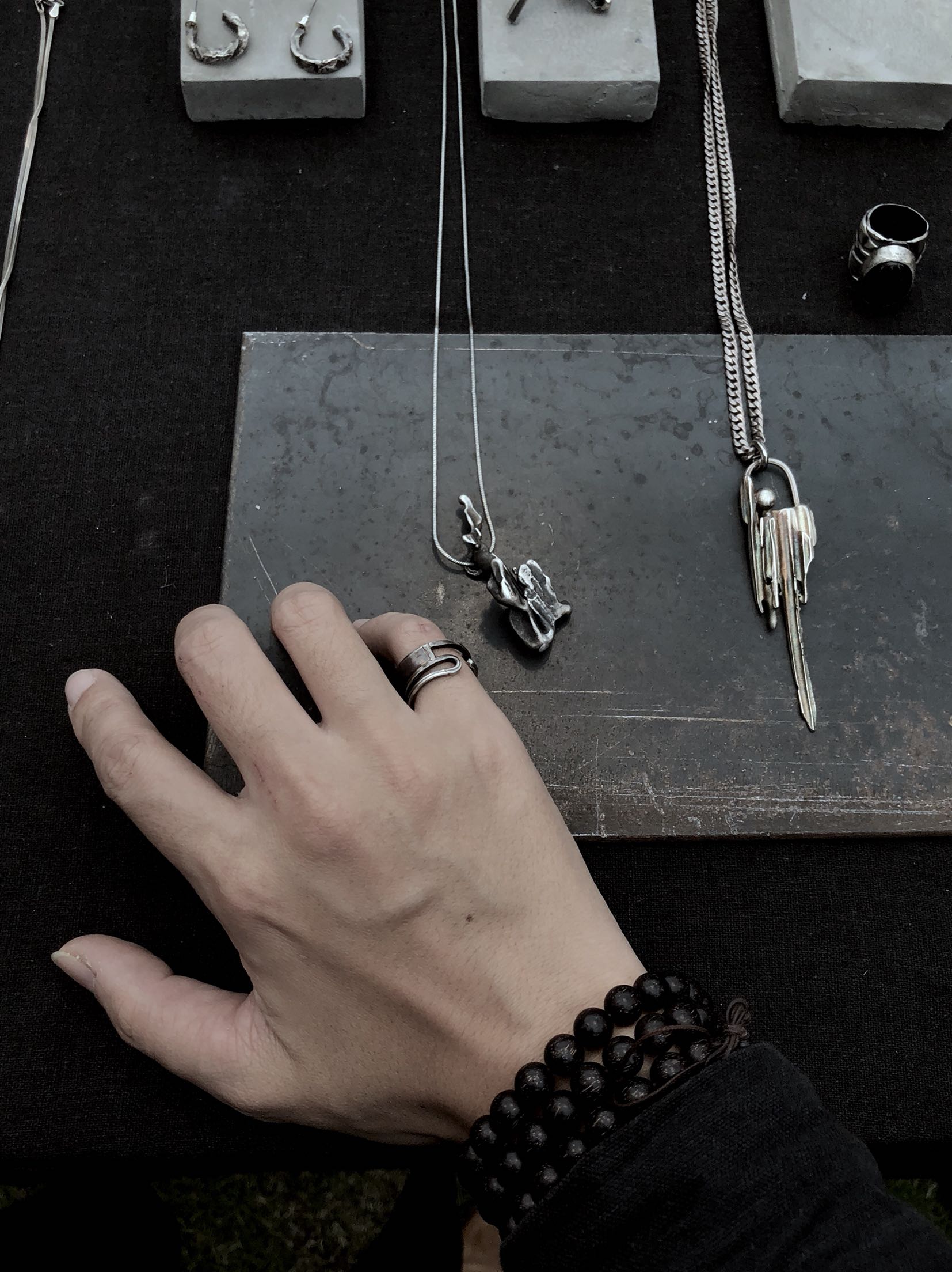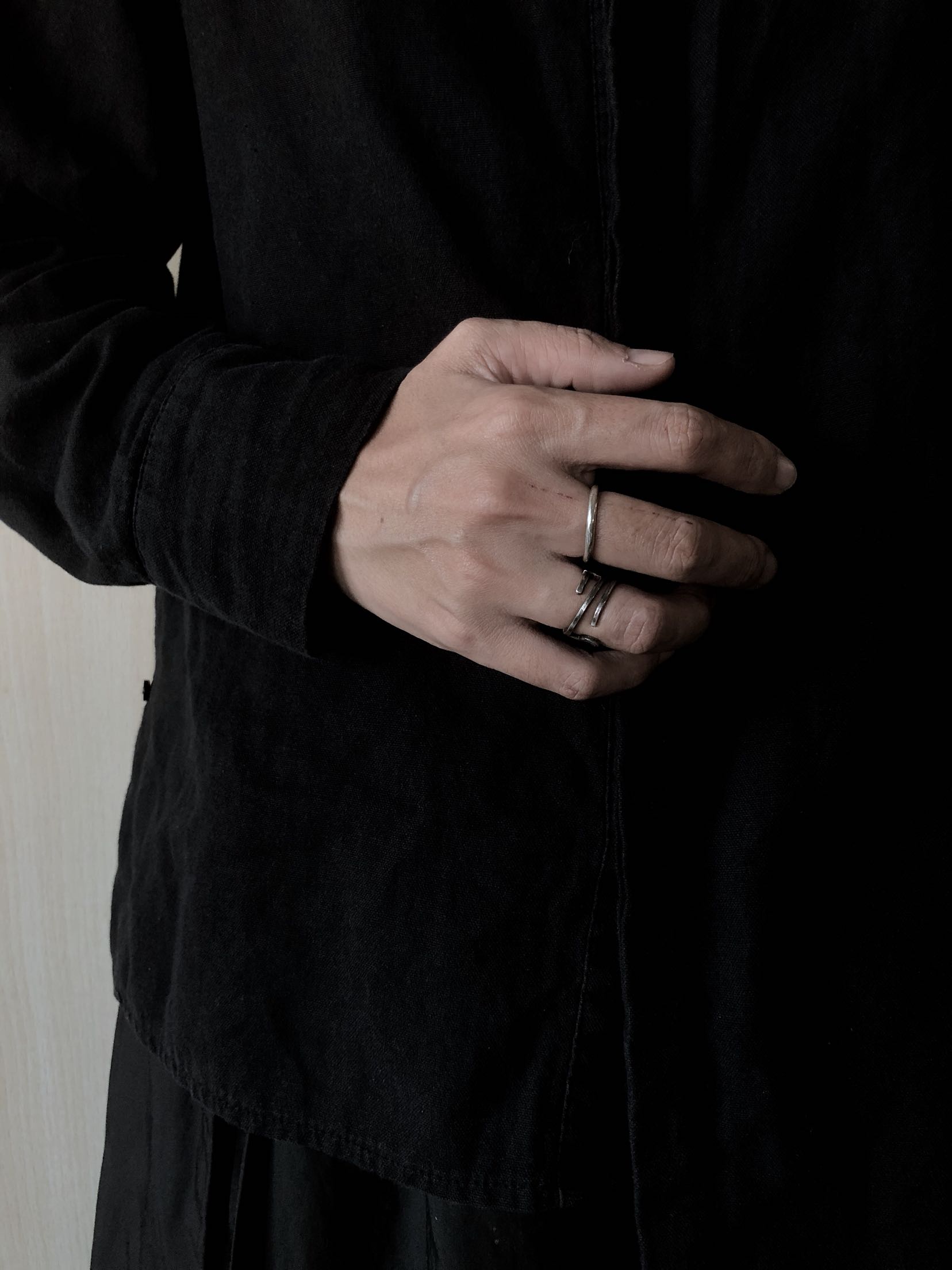 原创手工线条银戒指宽版尾戒无名指食指中指扳指设计暗黑先锋解构