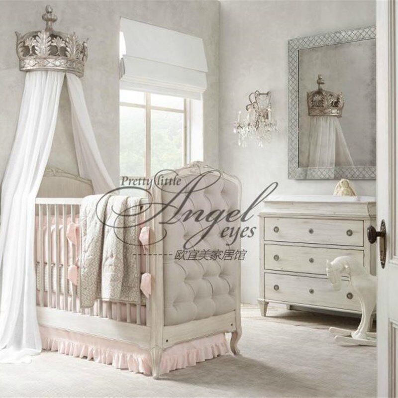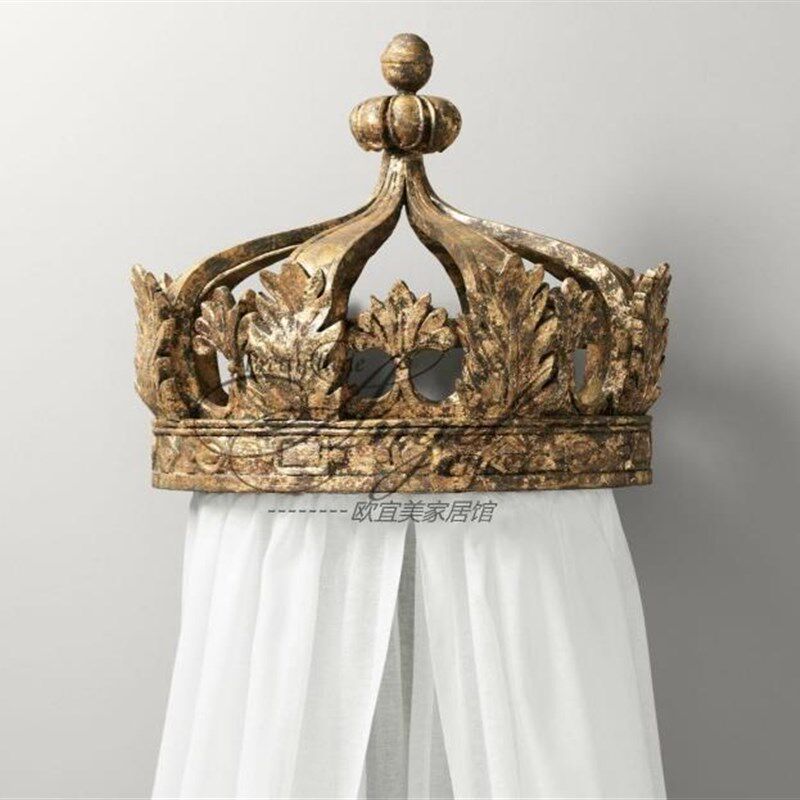 法式复古做旧皇宫半圆床冠 美式卧室实木床幔架饰品