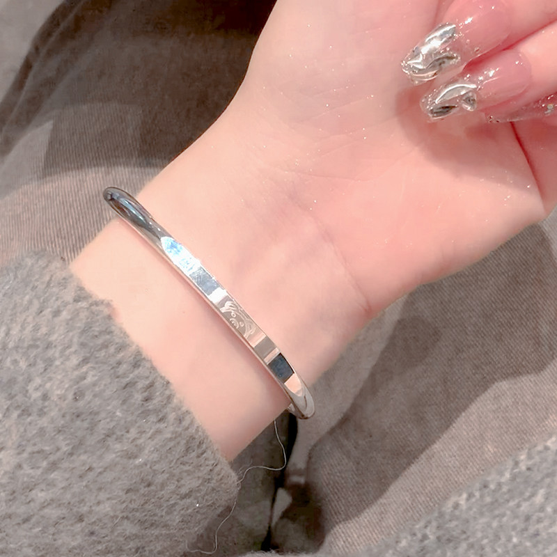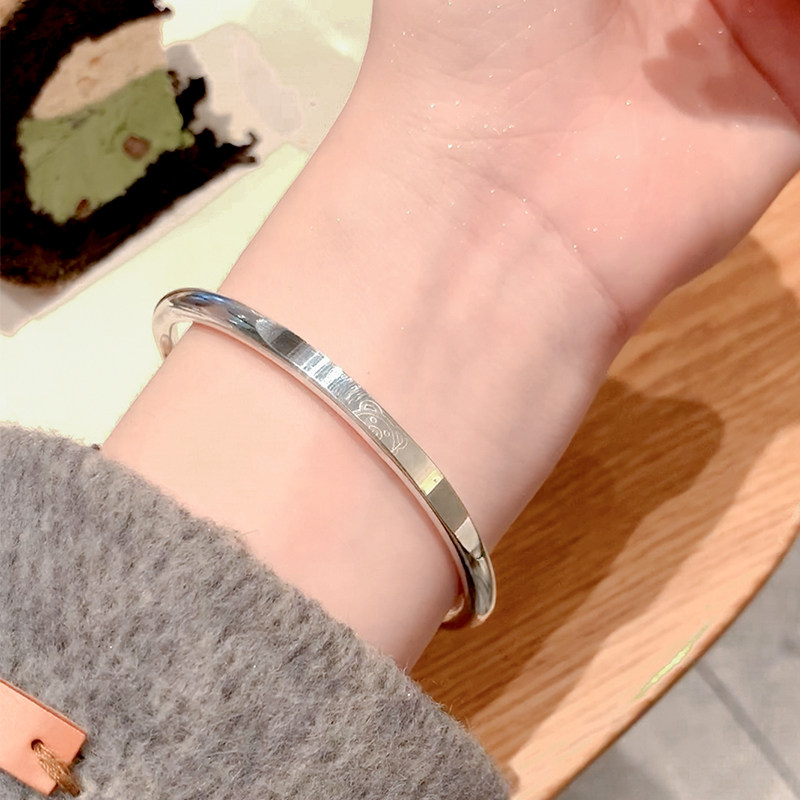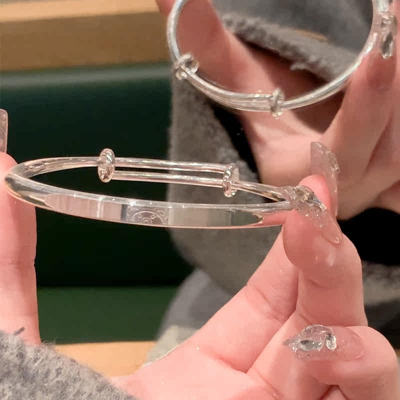 铜镀银手镯女少女小熊手镯高级感银镯子推拉式手链手串手环银饰品