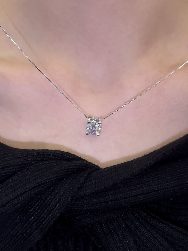 气质超闪锆石方块吊坠项链女2023年新款潮小众轻奢百搭锁骨链颈链