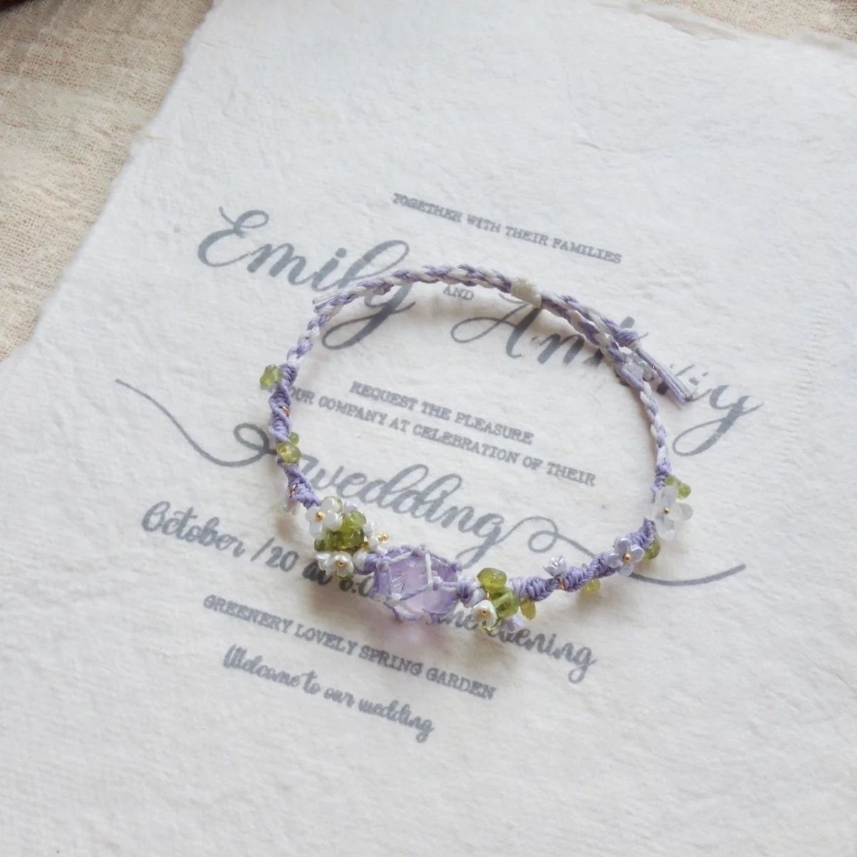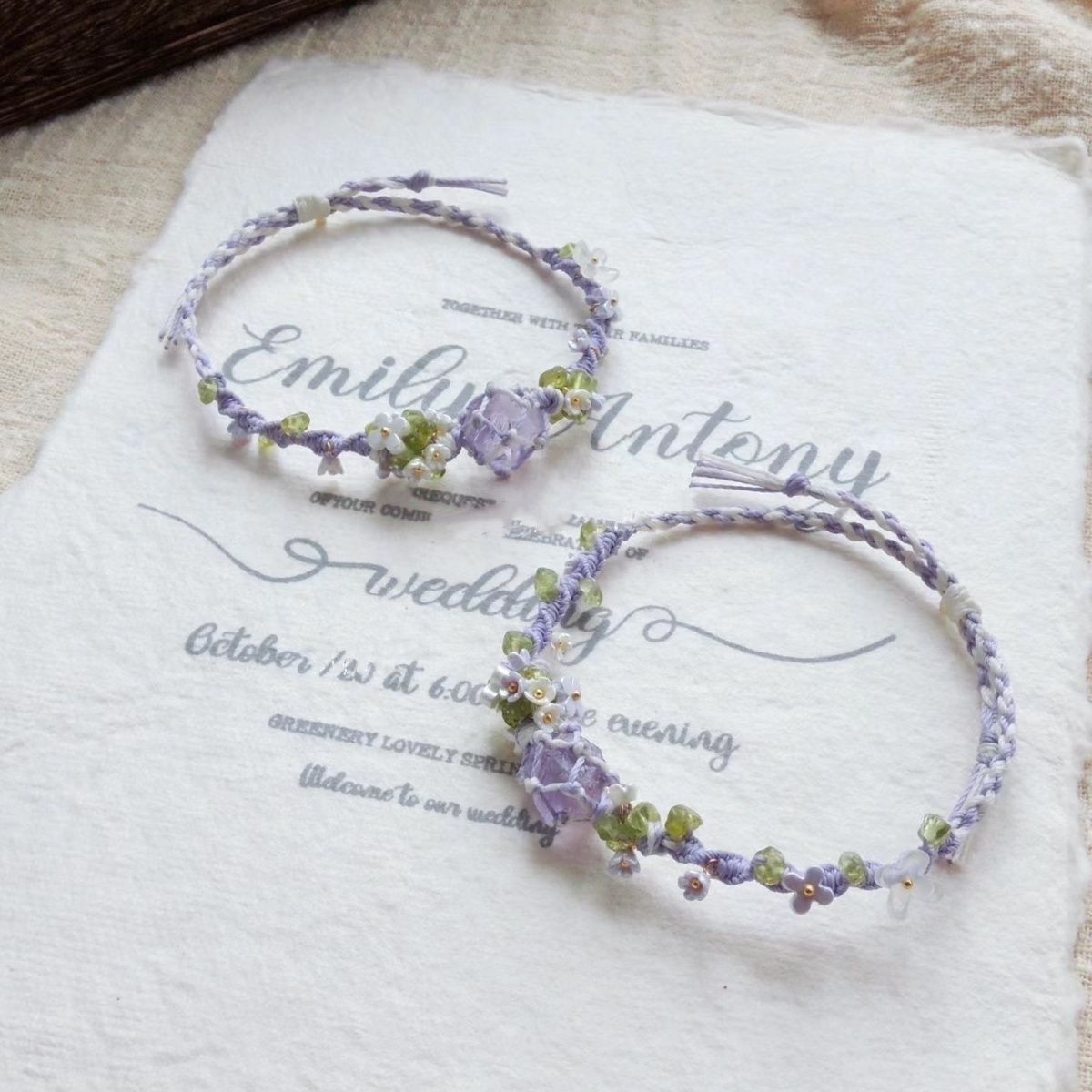 macrame手工编织手链紫萤石原石水晶超仙花朵俏皮甜美森系手绳