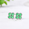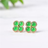 玉石匠翡翠色四叶草耳钉 祖母绿色韩款耳坠 时尚网红银镶嵌耳饰品