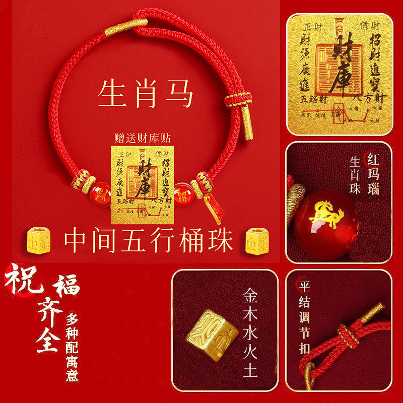2026马年太岁化红绳手链本命年六合生肖护身符属马鼠牛兔红色手绳