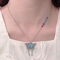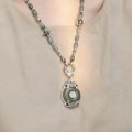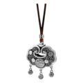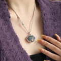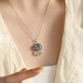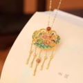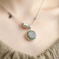 S925银莲花心经项链男女绘琅荷花如意锁吊坠复古锁骨链七夕礼物