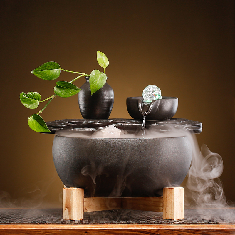 陶瓷循环流水生财转运珠喷泉鱼缸家用装饰造景流水景观Z摆件循环