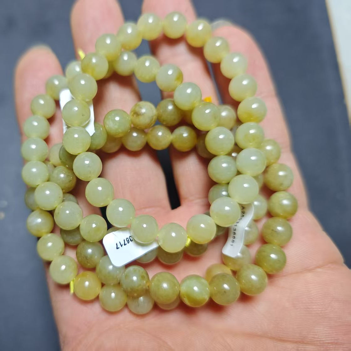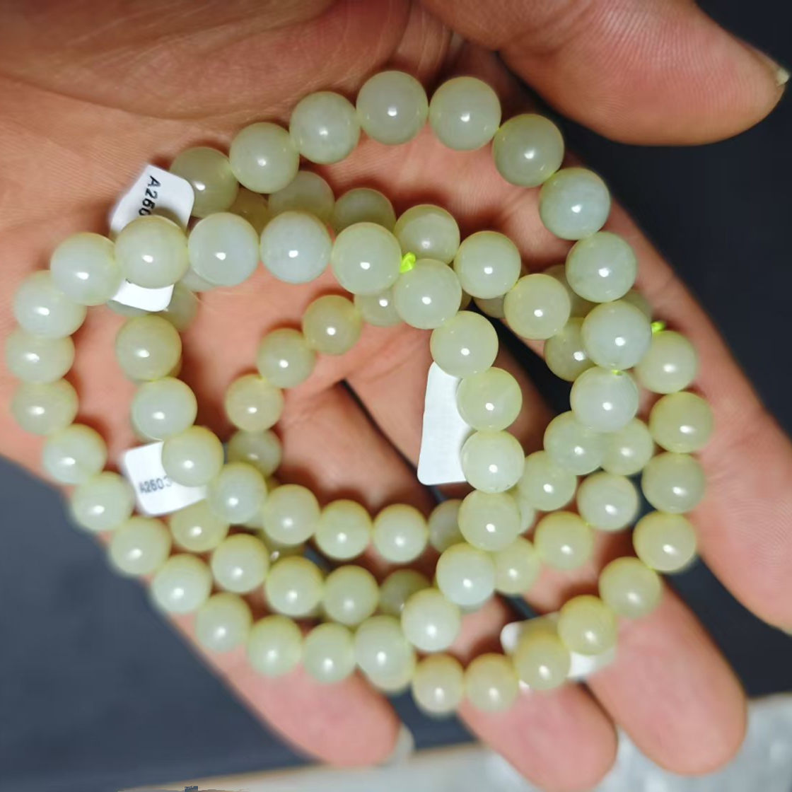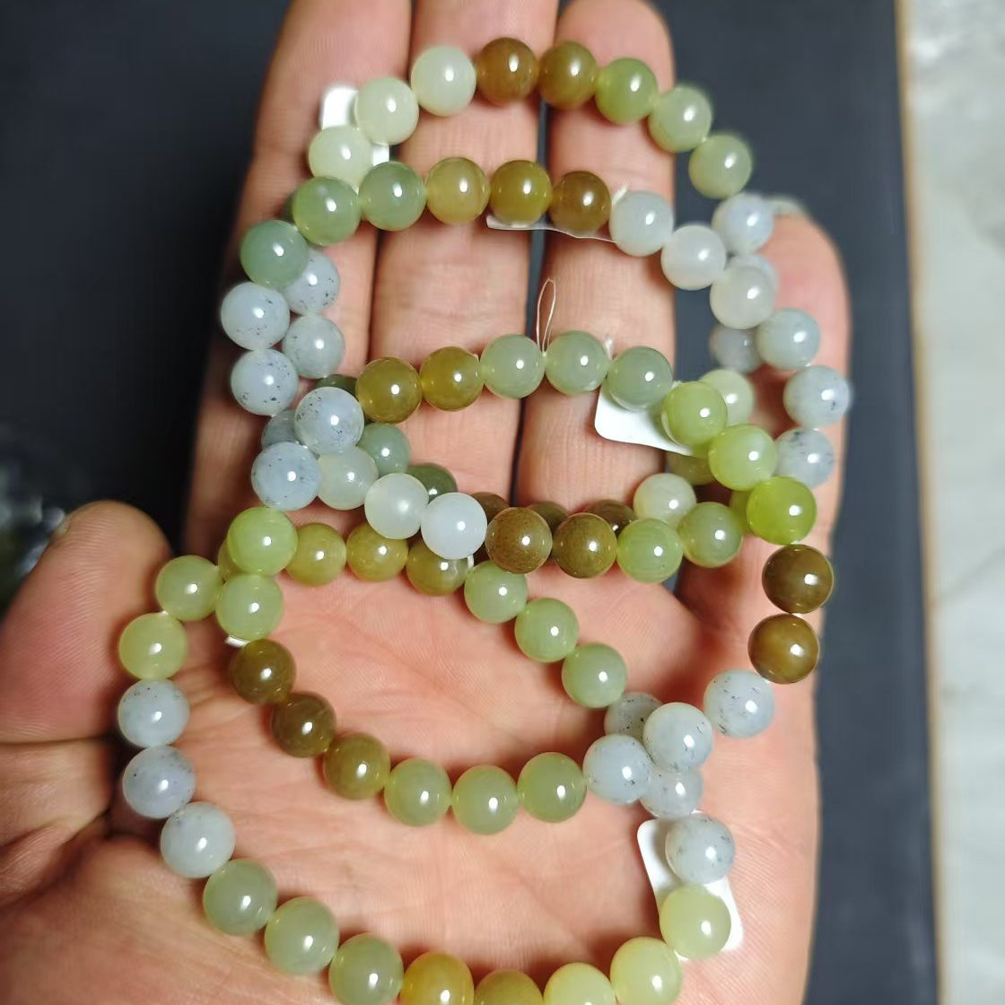 纯天然新疆和田玉多宝彩色黄口糖白晴水手链串8m单圈女圆珠送证书