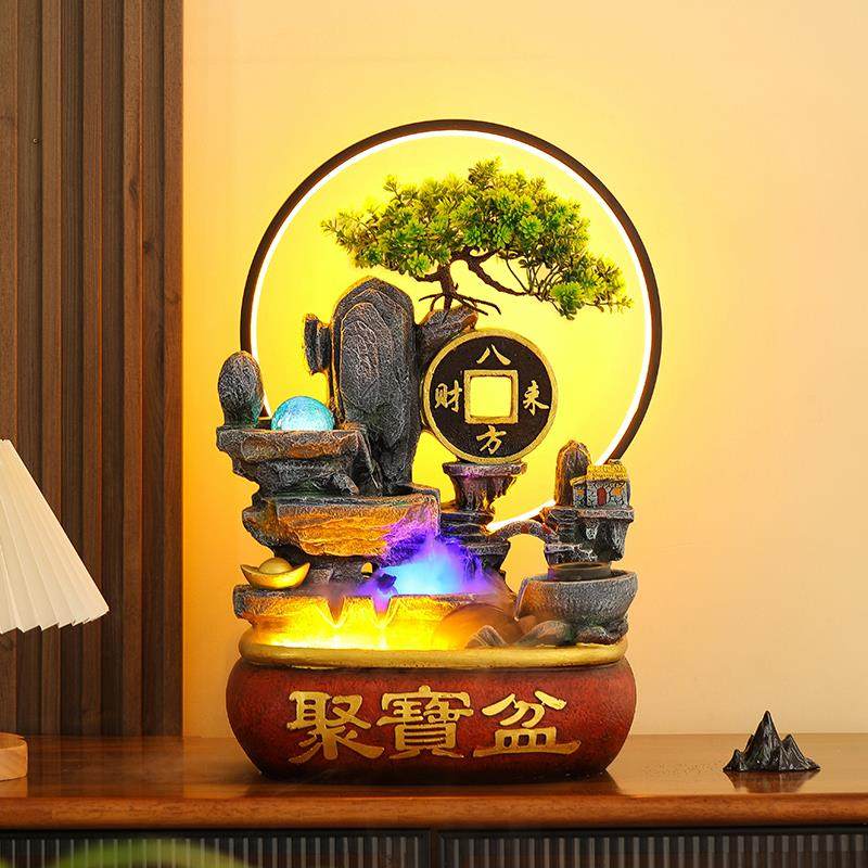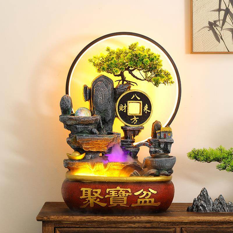 桌面假山流水喷泉鱼缸循环风水轮加湿器八方来财客厅开业乔迁摆件