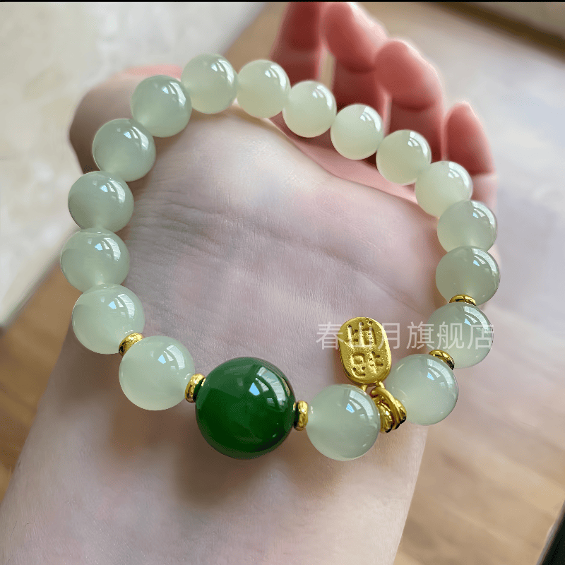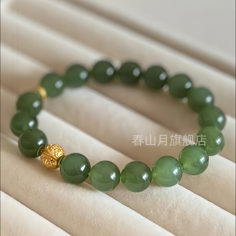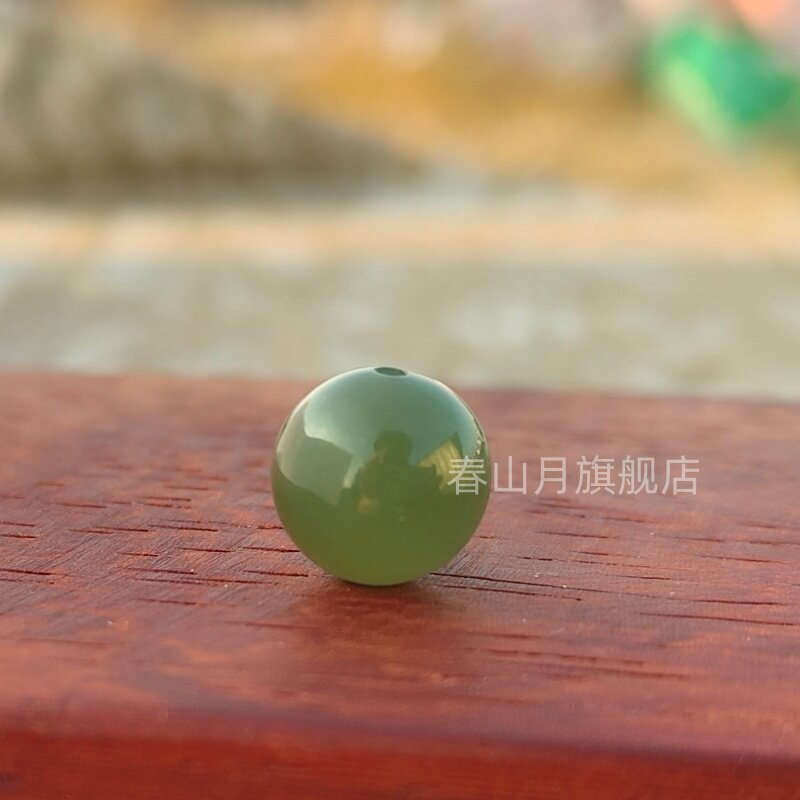 天然和田玉冰晴水湖水绿浅色单珠圆珠青白散玉石文玩多宝手串配珠