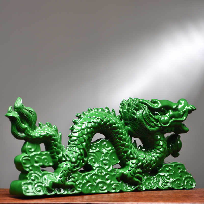 绿色实木雕刻祥龙摆件十二生肖龙新中式家居客厅办公柜台装饰礼品