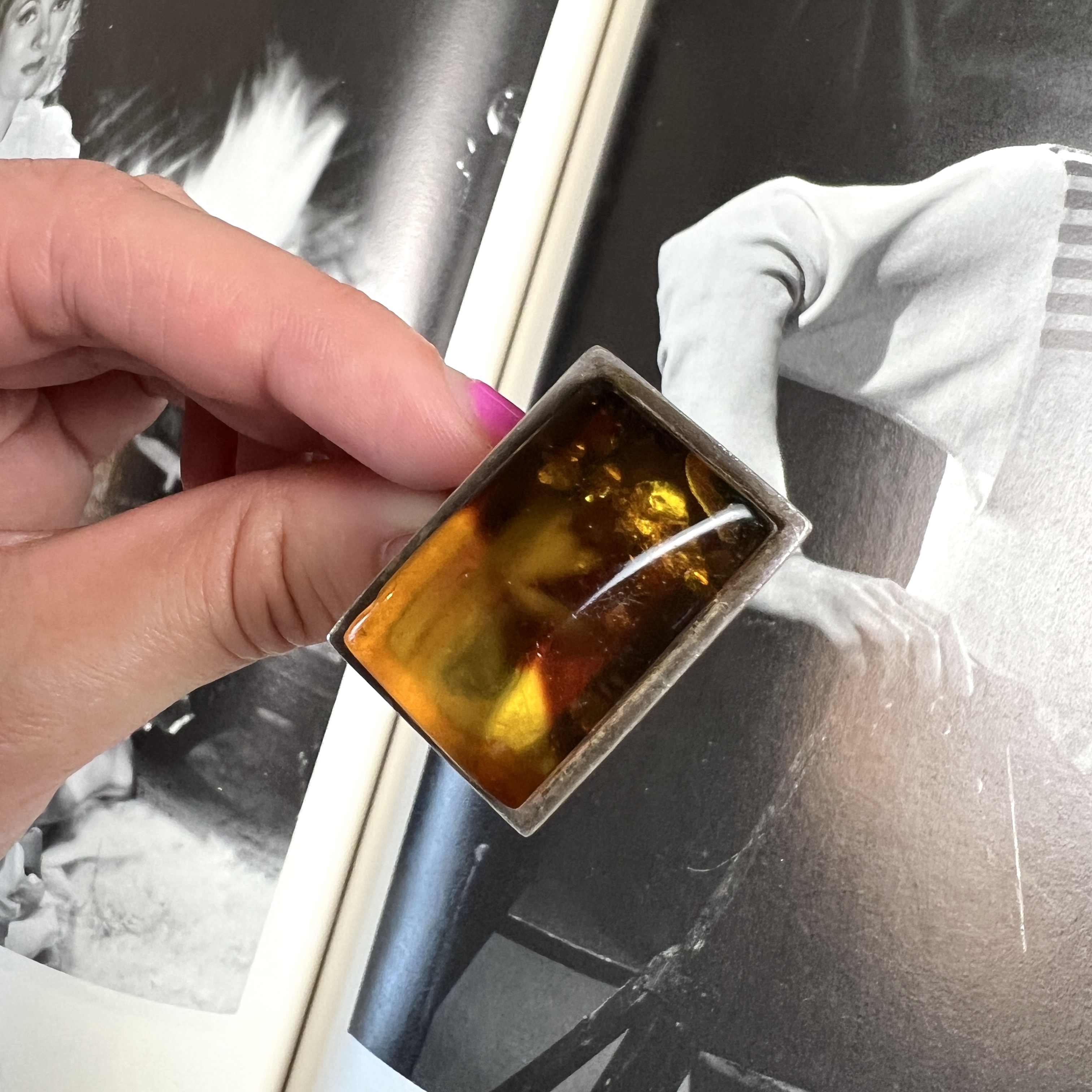 天然原矿琥珀戒指925纯银蜜蜡戒指半蜜半蜡欧美手工银饰13号