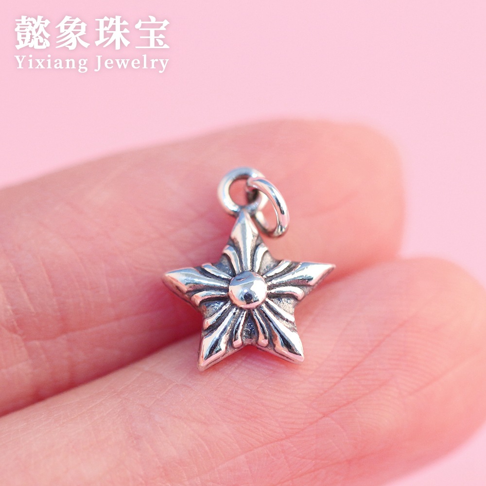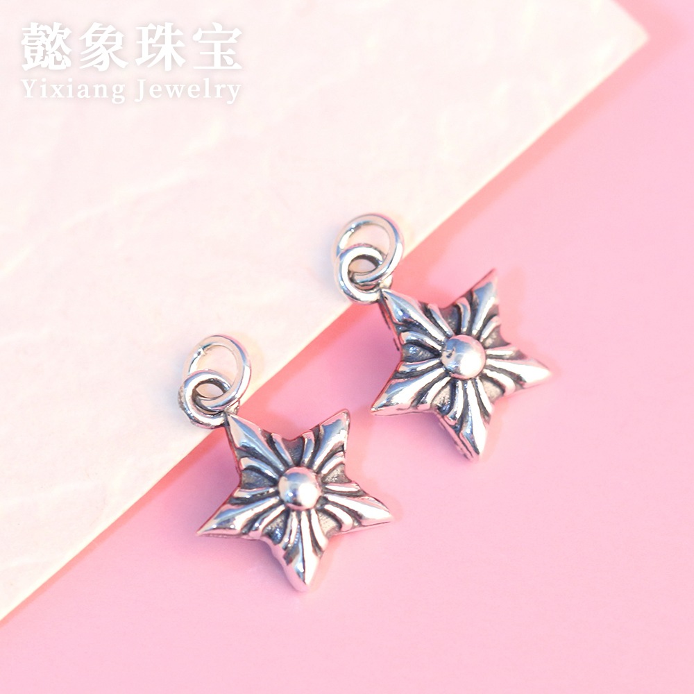 S925银欧美风复古朋克五角星吊坠嘻哈手链项链DIY个性配件