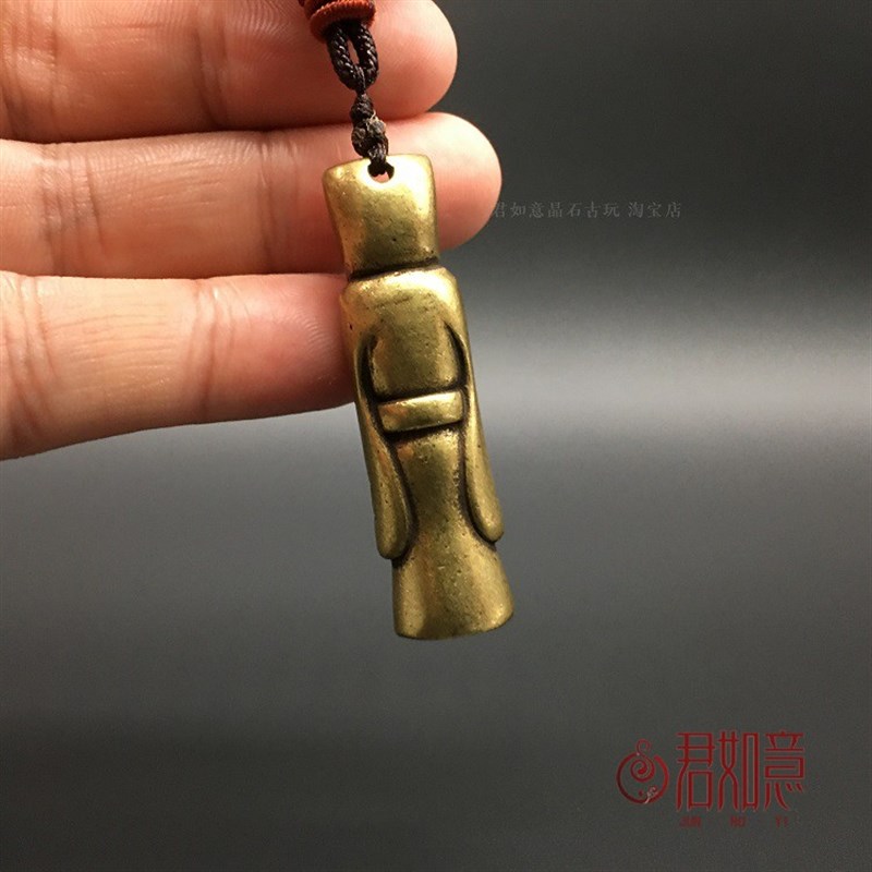 仿古黄铜小铜f人挂件实心黄铜仿古古代太师丞相大臣造型简约钥匙