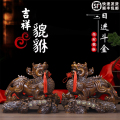 黄铜貔貅摆件公母一对聚招貔犰家居客厅办公室酒柜乔迁礼物工艺品