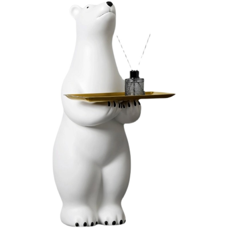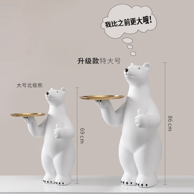 创意北极熊大型迎宾落地大摆件玄关客厅电视柜收纳托盘家居装饰品