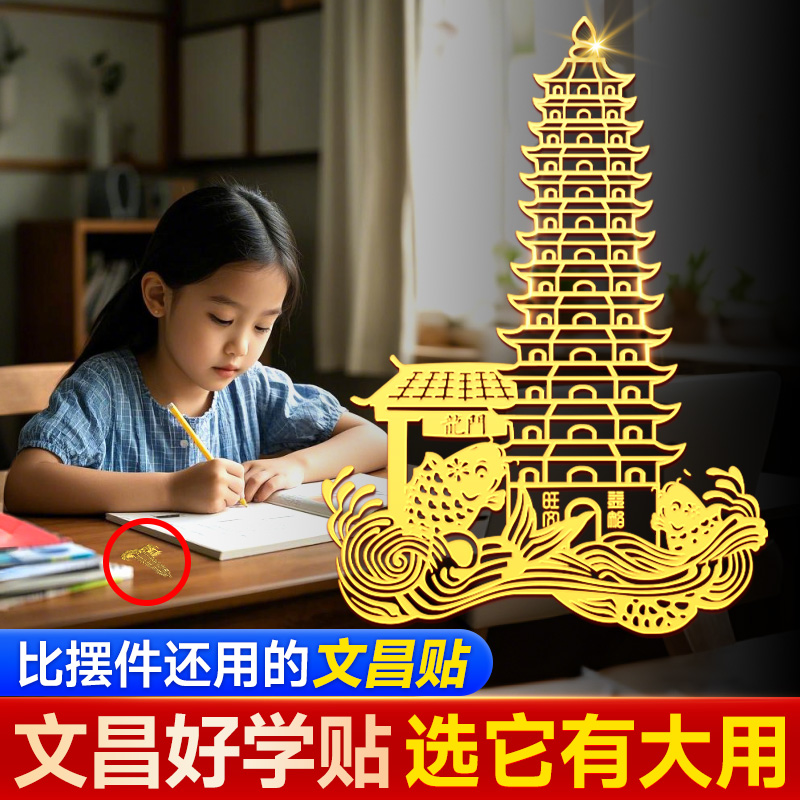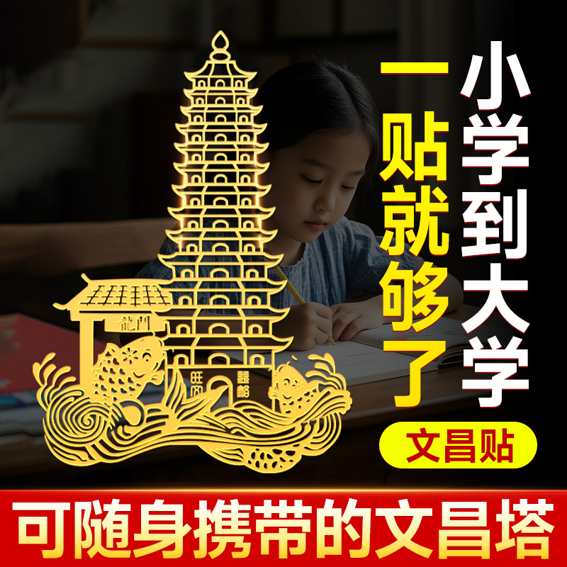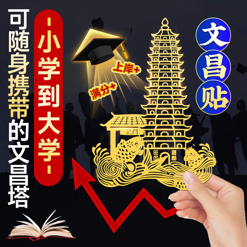 文昌塔金属贴金榜题名隐形手机贴9层13旗舰店桃木钥匙扣随身挂件