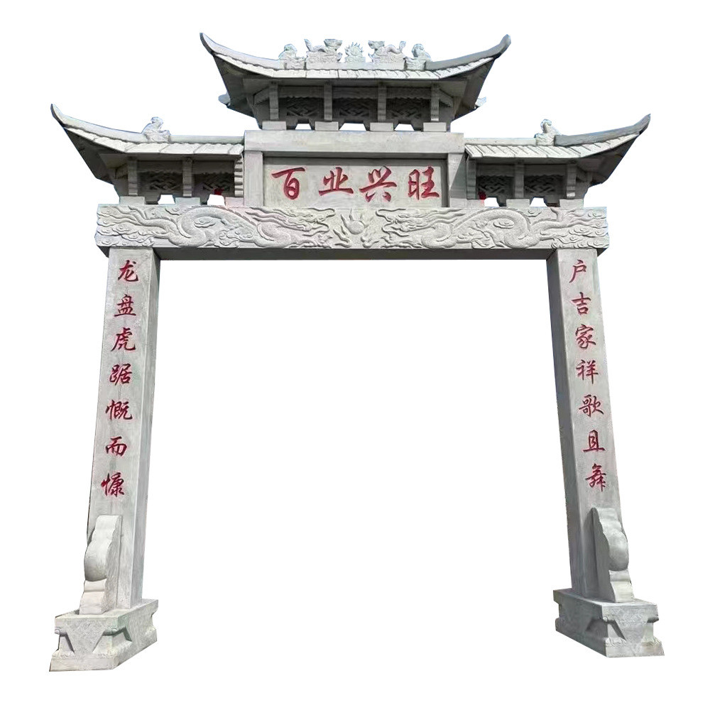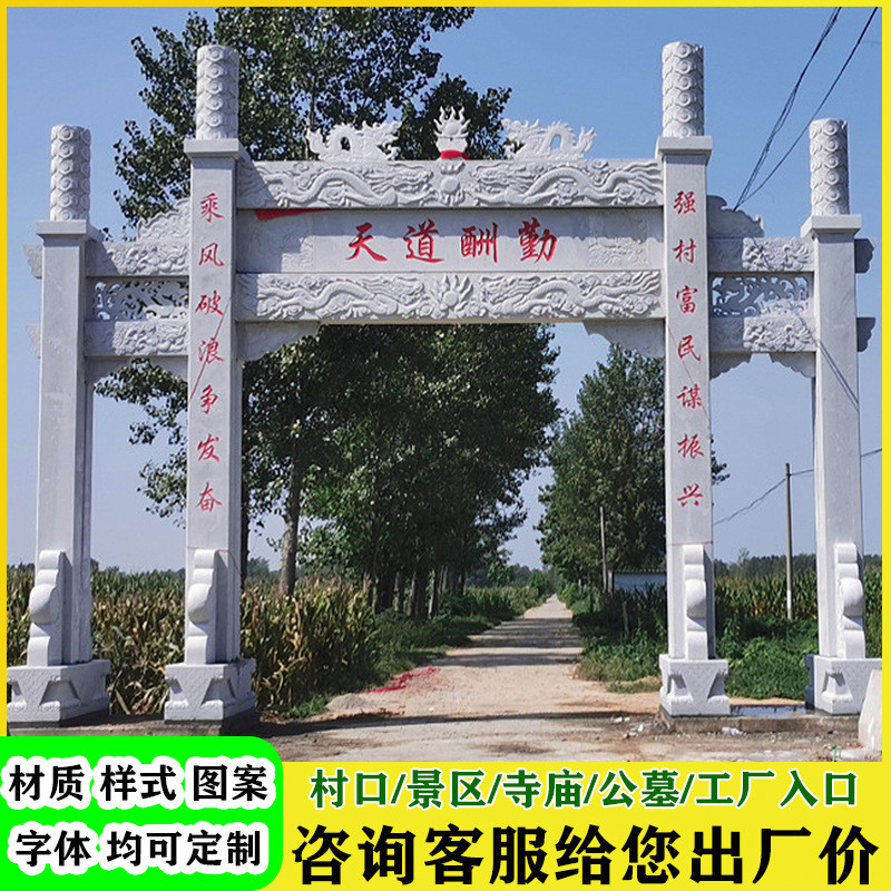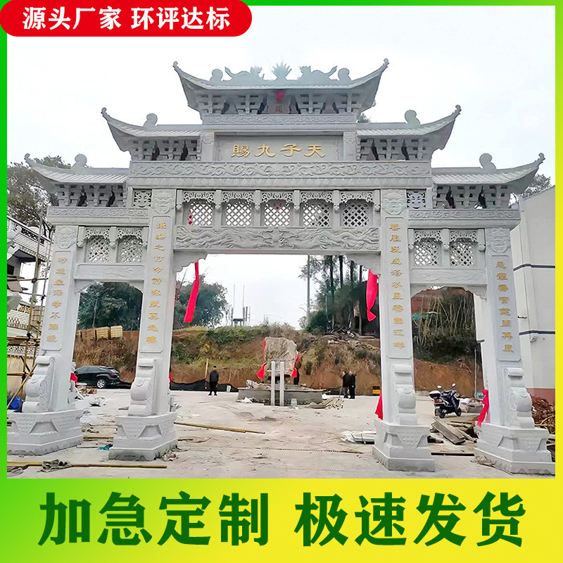 石材户外村口石牌楼花岗岩石雕山门楼农村牌坊建设大型青石石牌坊