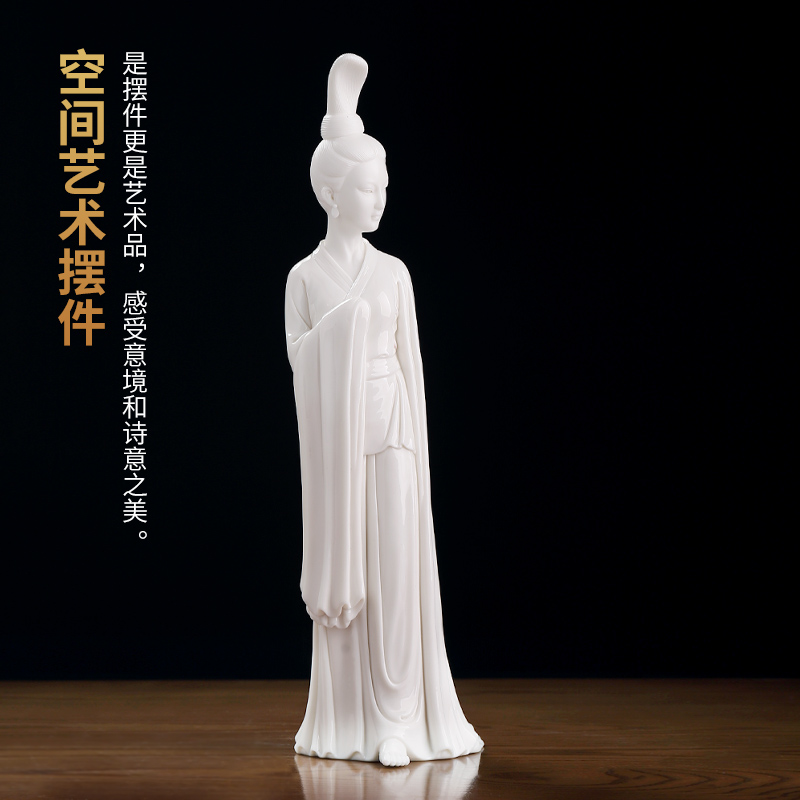 素茗《只此青绿)仕女摆件中国白德化瓷雕塑艺术品中式客厅装饰品