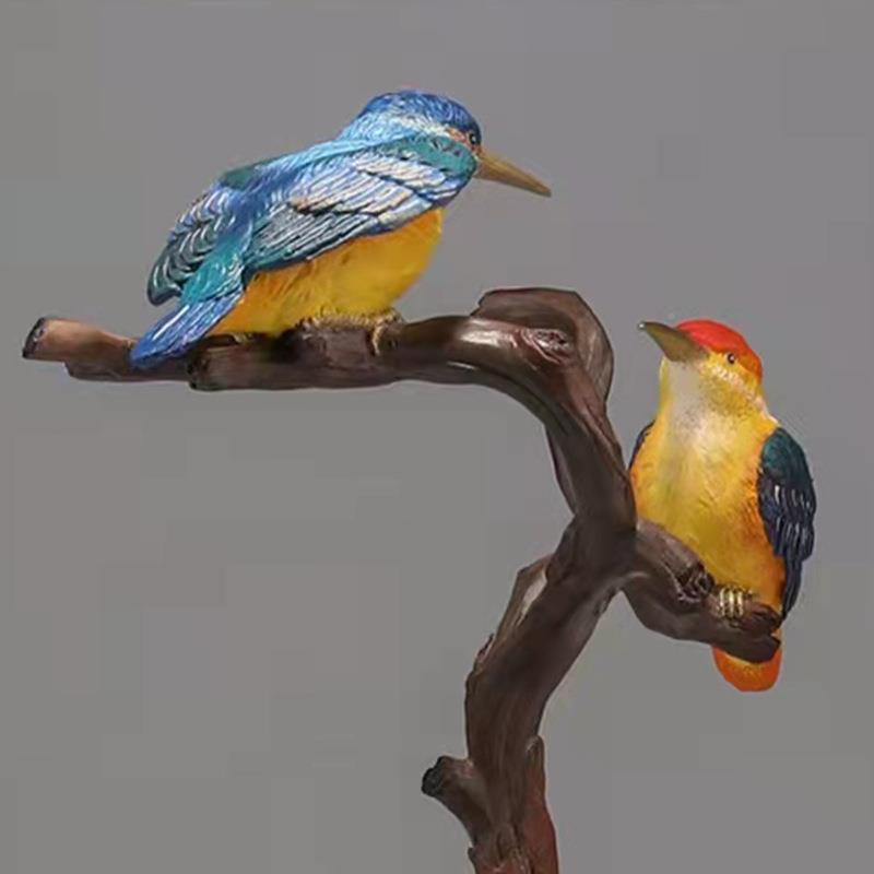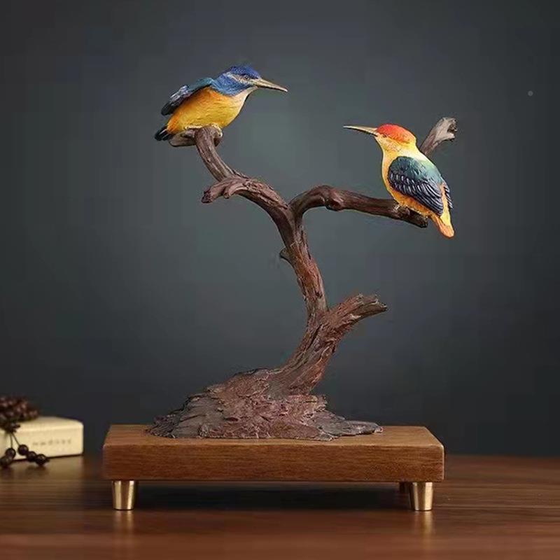 铜工艺品树枝鸟摆翠鸟对歌送家居客婚厅办公THSY222桌面摆件结婚