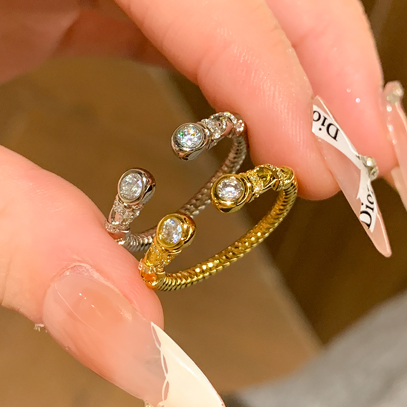 女神权杖双生素圈戒指女轻奢高级感开口尾戒锆石戒指2025新款爆款