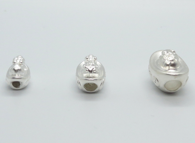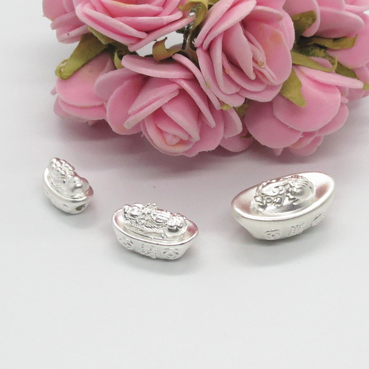 S999纯银3D硬银招财DIY 男女款福字神兽如意元宝貔貅红绳手链配件