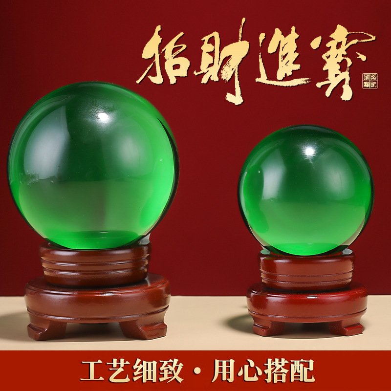 黄色水晶球摆件白红绿蓝粉色透明玻璃球招财可旋转开业客厅装饰品