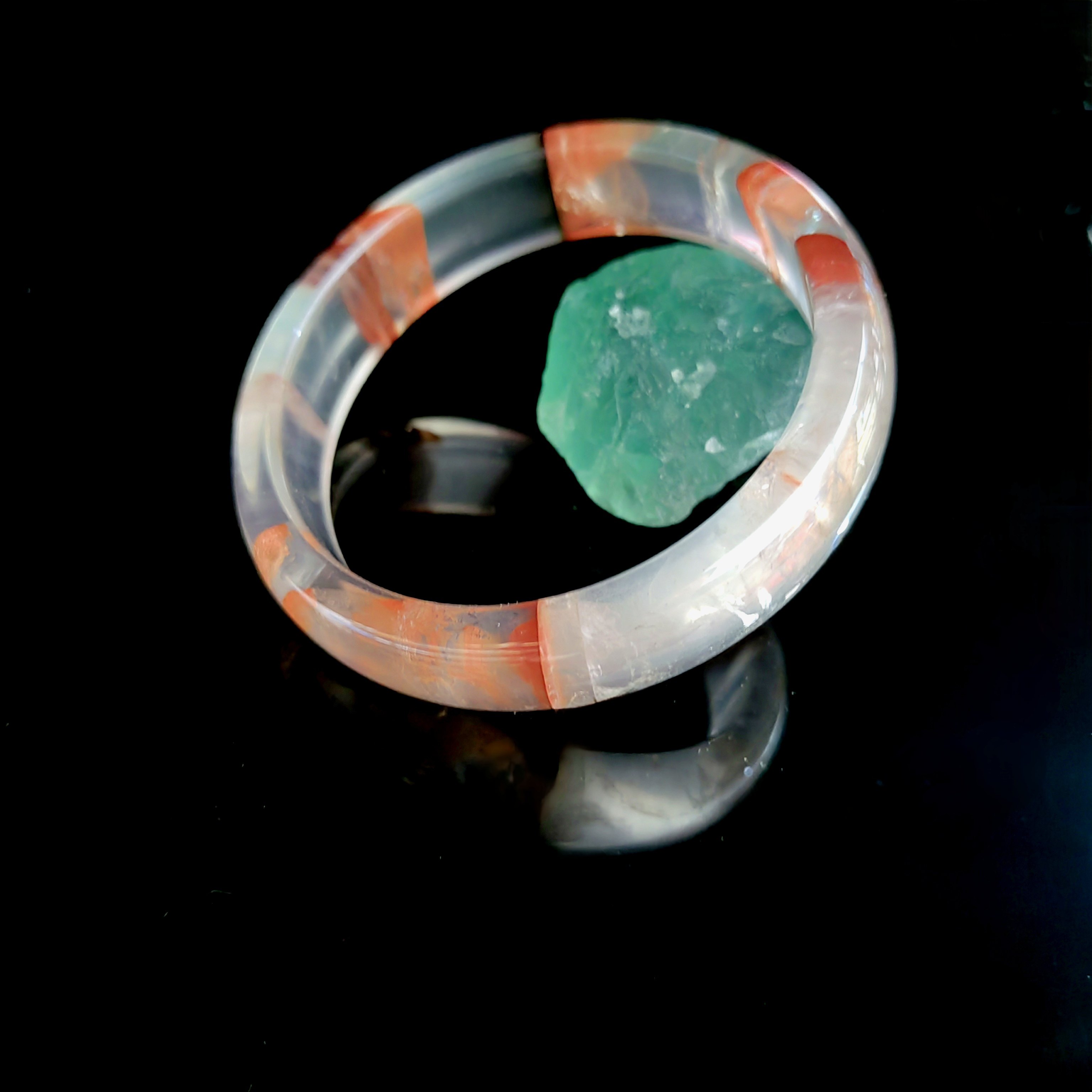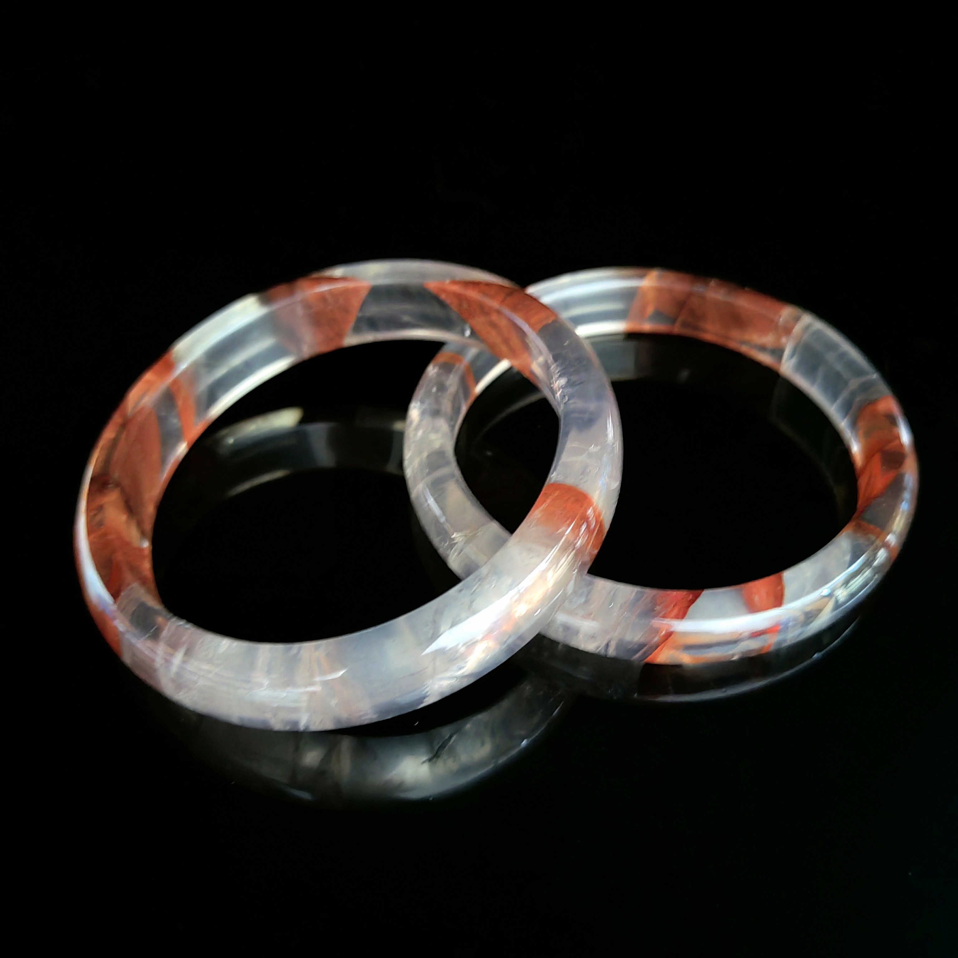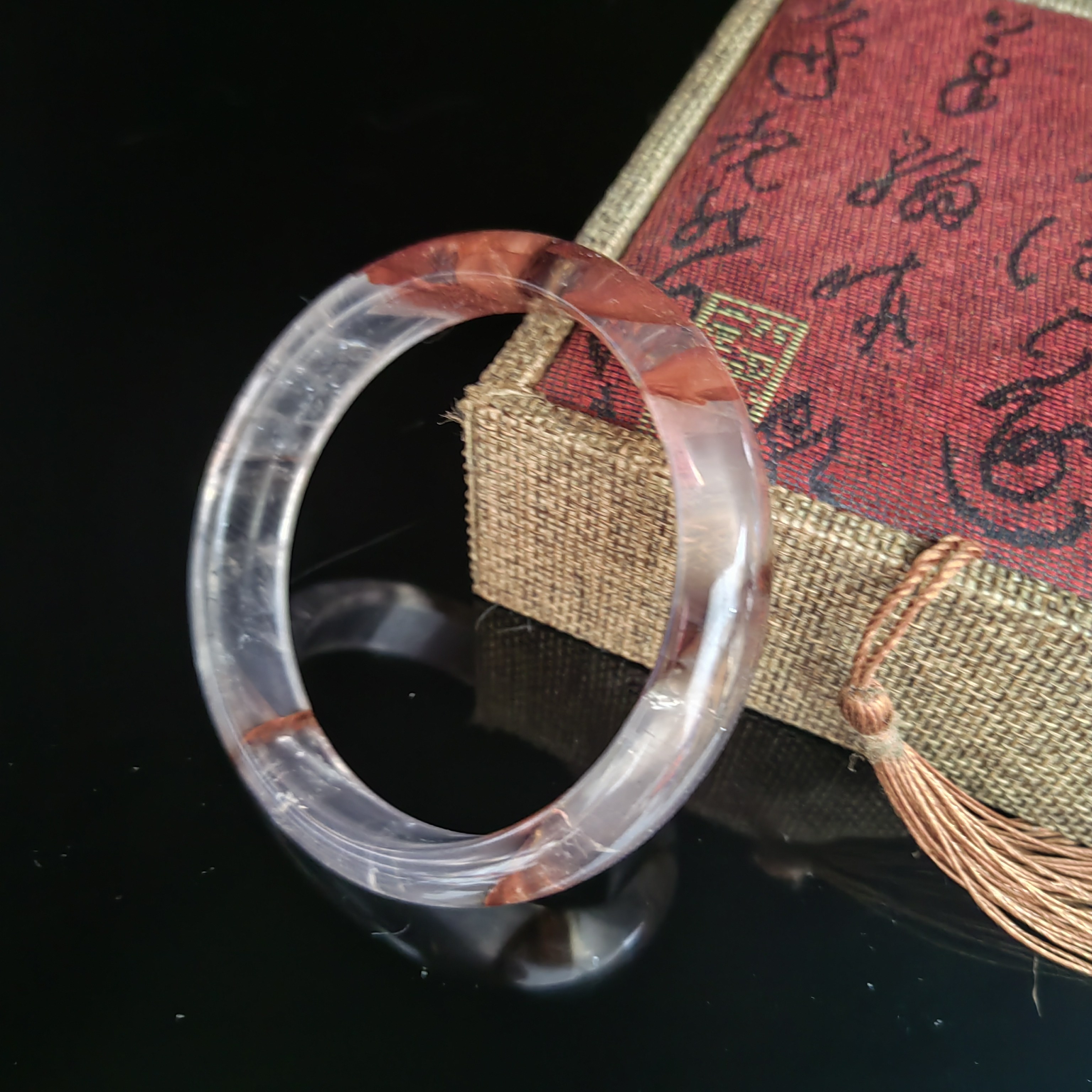 一物一图天然异象水晶红胶花手镯鸩羽凤凰牛血红胶花无染无胶大漏