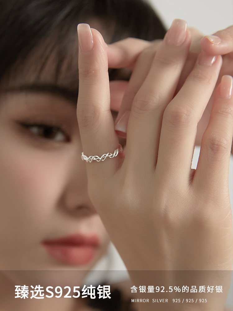 925纯银交织线条戒指女指环小众设计ins风简约个性时尚网红