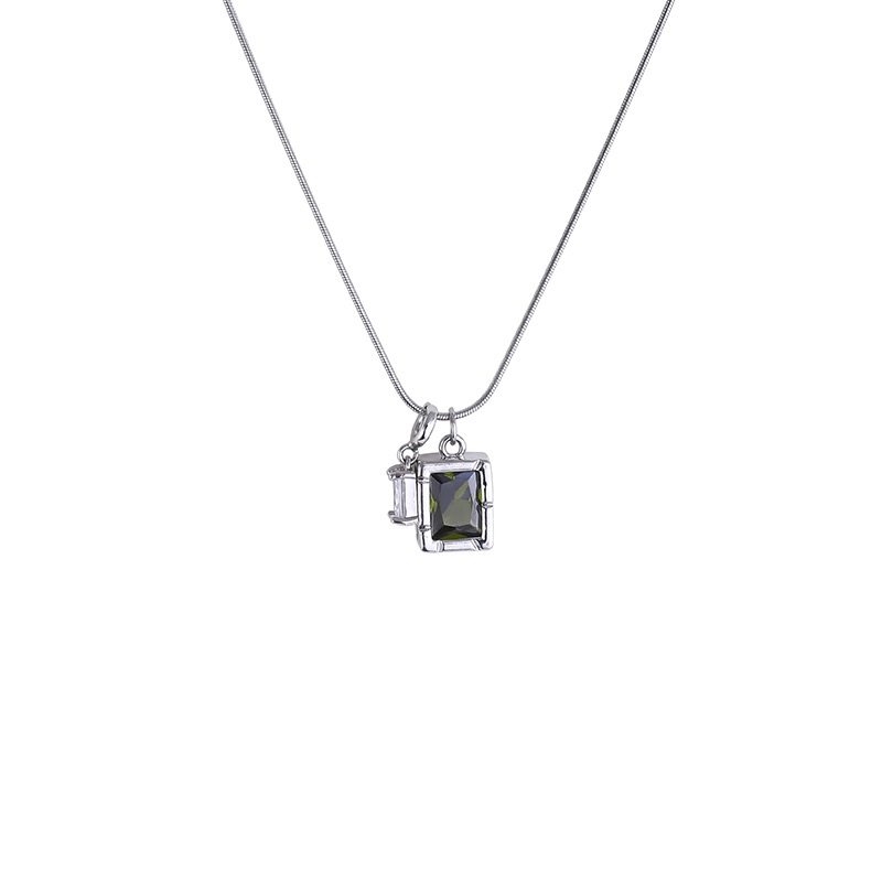 GuangYu绿宝石方钻吊坠蛇骨链高级感项链男轻奢小众设计锁骨链女