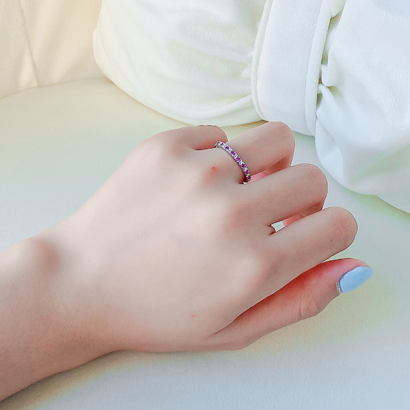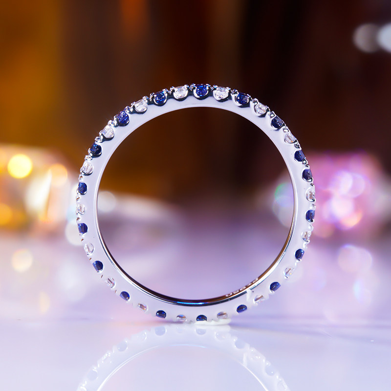 PT950铂金莫桑石相间排戒纯银粉钻戒指蓝白钻戒叠戴温柔精致日常