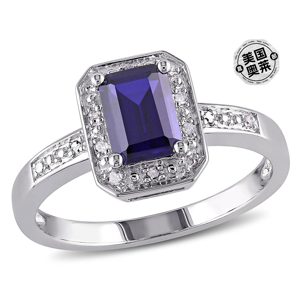 自营 925 纯银 Mimi & Max 1 3/5 克拉 TGW 祖母绿式切割蓝宝石和