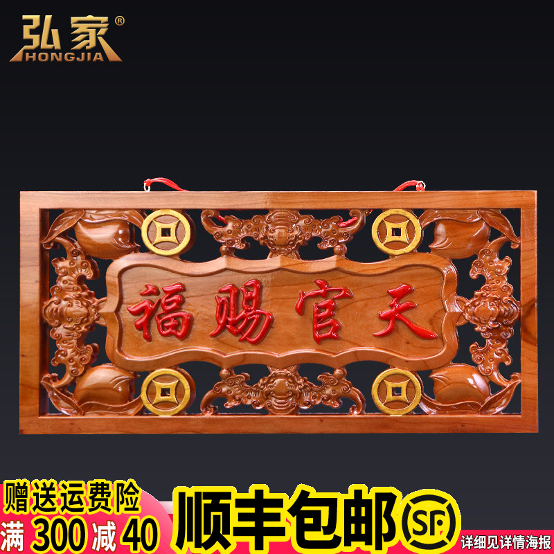 天官赐福挂件实木k牌匾门贴桃木雕刻镂空大门对门卧室客厅玄关摆