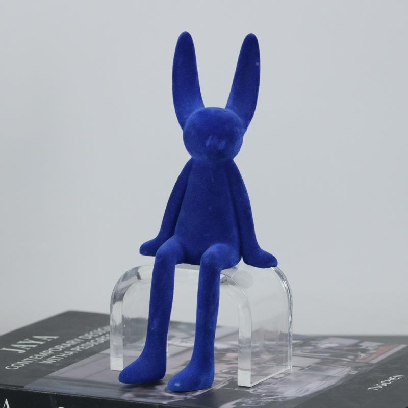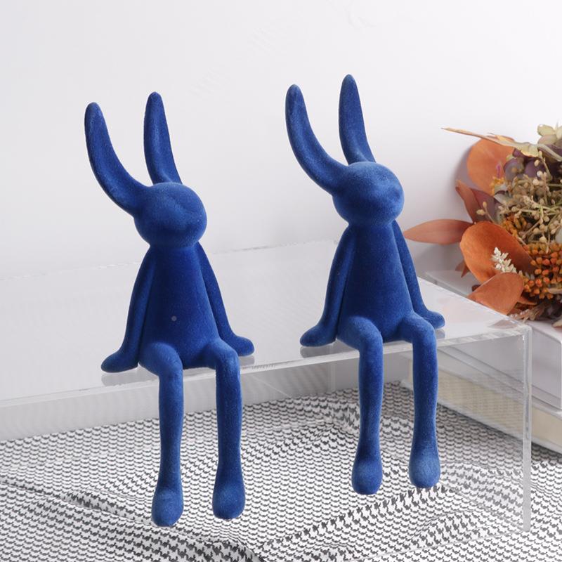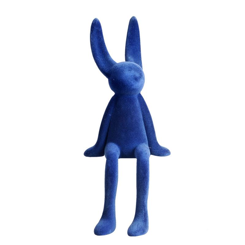 现代蓝色绒坐姿兔童人摆件售楼处样房JND儿房板床头柜时尚轻装饰