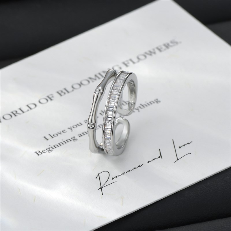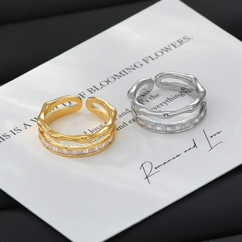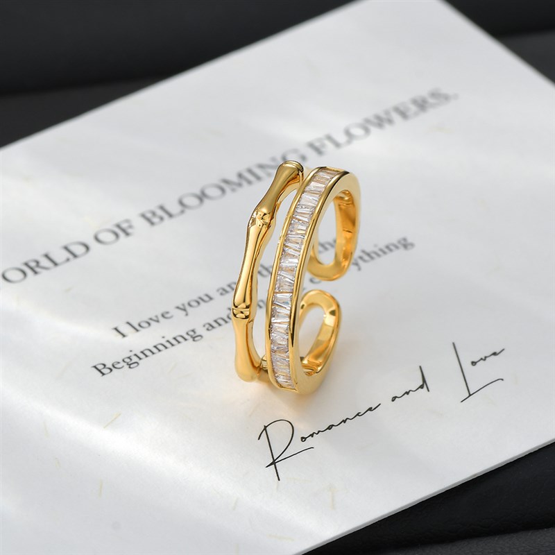 真金电镀网红精致超闪锆石戒指女生轻奢高级感开口V可调节指环简