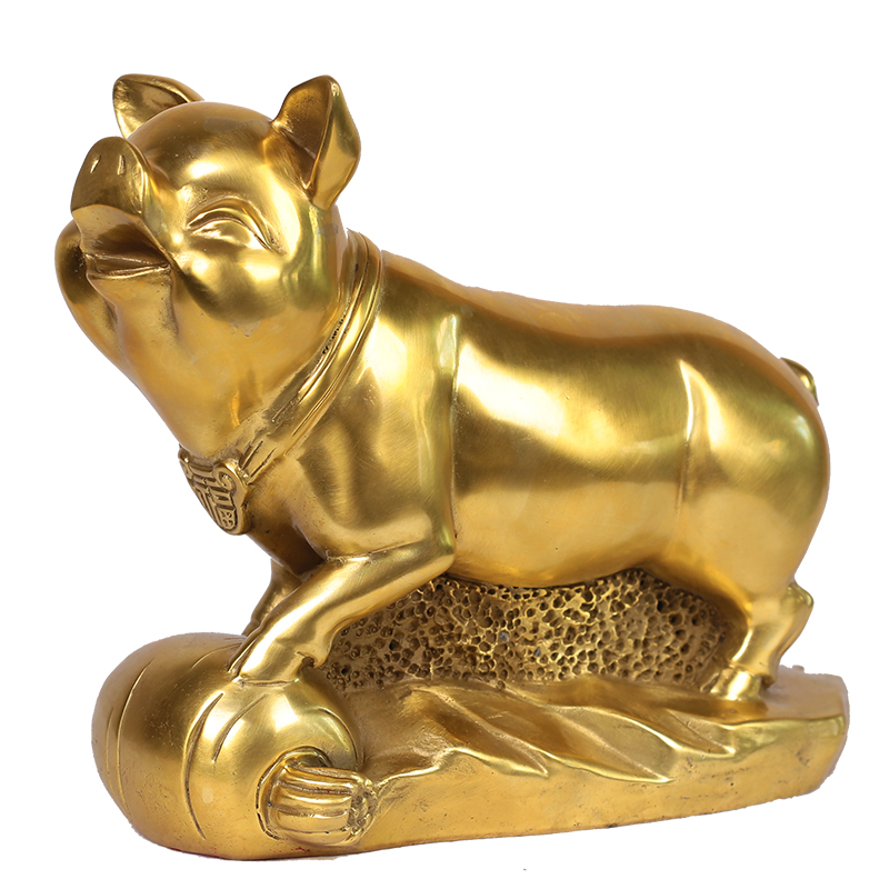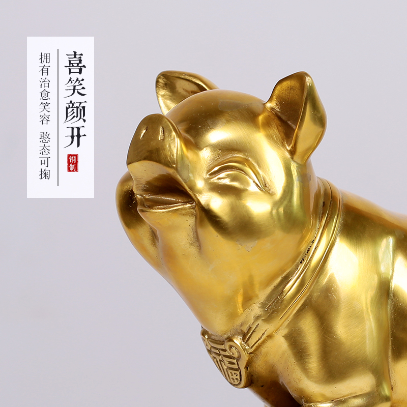 纯黄铜猪摆件 招财金猪铜猪家居风水摆设工艺品十二生肖猪摆件
