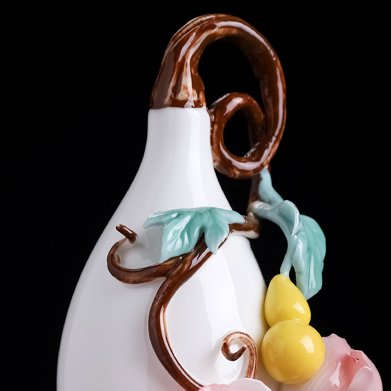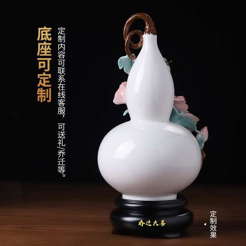 新中式非遗手工瓷花陶瓷牡丹葫芦瓶摆件客厅博古架装饰品乔迁礼品