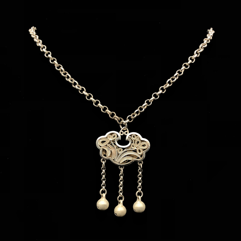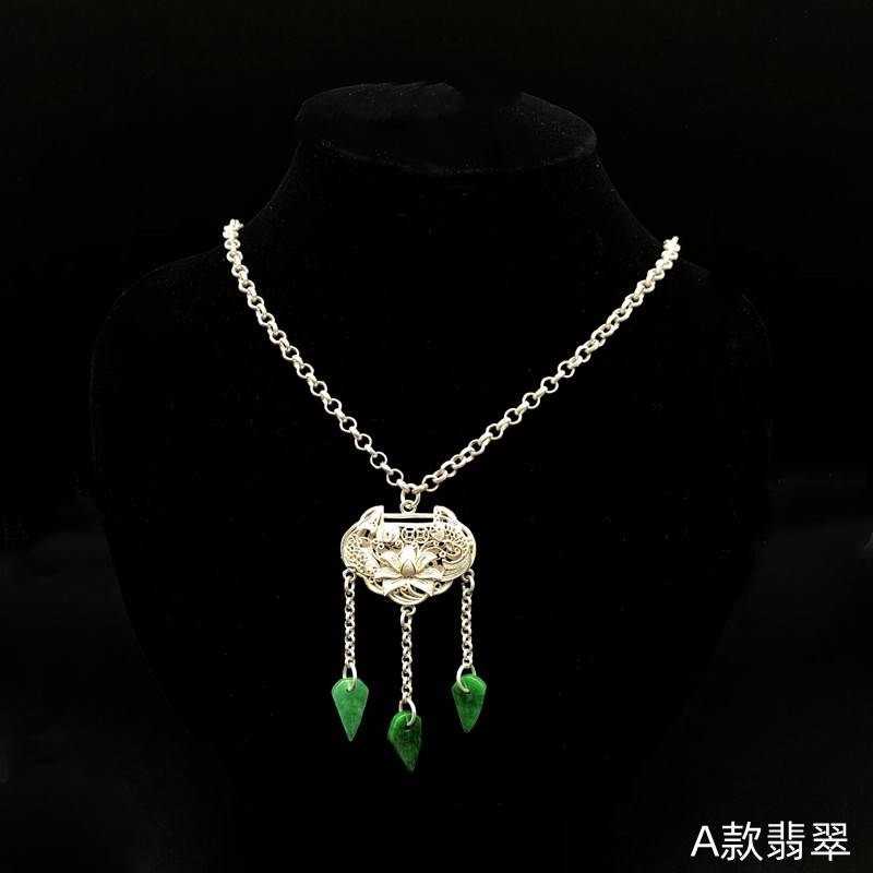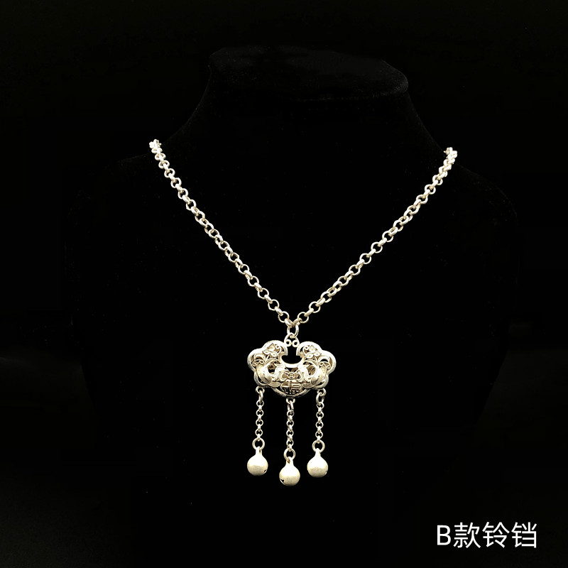 压襟老银项链锁牌吊坠百搭苗银手工掉蓝宝石民族风颈饰礼品收藏品
