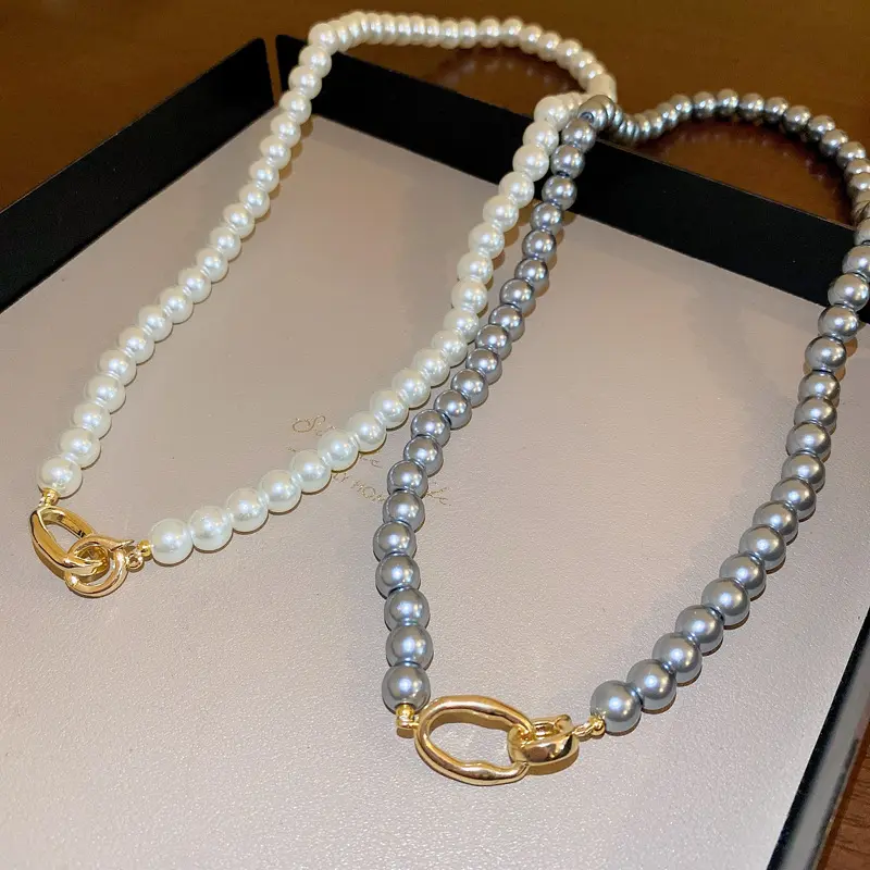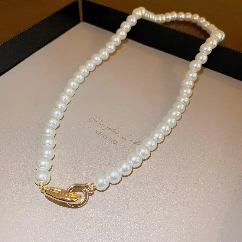 法式复古珍珠卡扣项链简约小众百搭锁骨链轻奢个性时级感项饰
