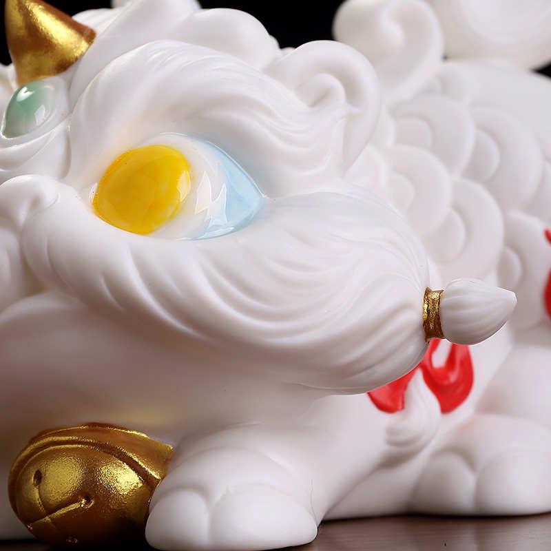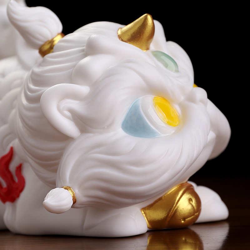 可爱中国风陶瓷麒麟招财摆件德化白瓷工艺客厅办公室桌面国潮装饰