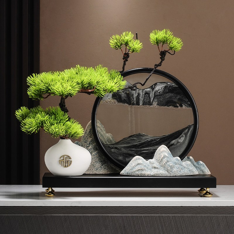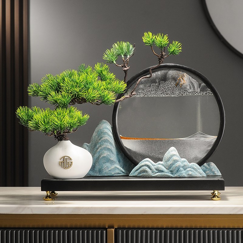 迎客松山水流沙画摆件新中u式客厅玄关电视柜办公室创意高档装饰