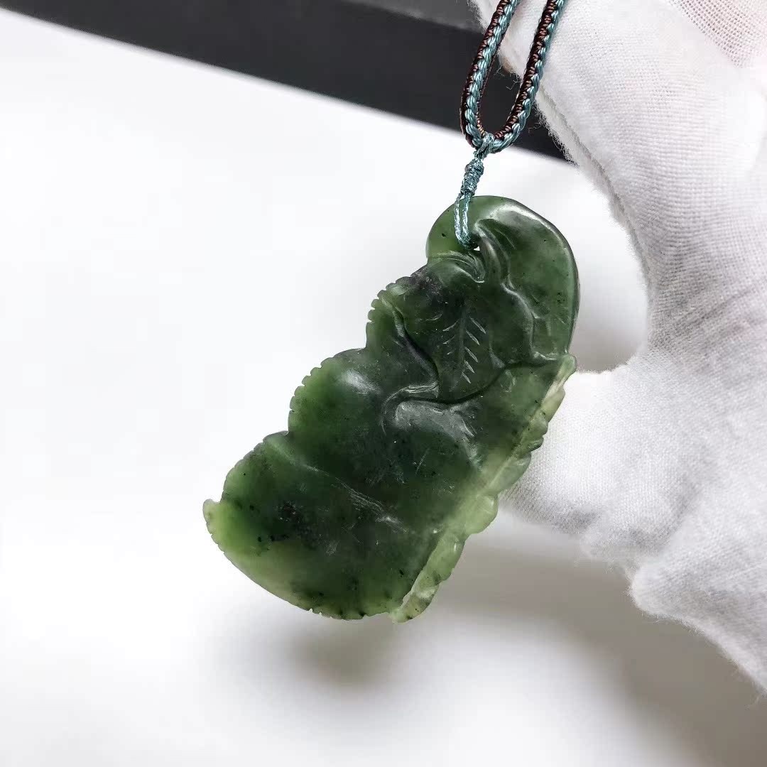 D1126# 天然和田玉碧玉葫芦吊坠 福禄寿挂件61*31.3*12.5mm