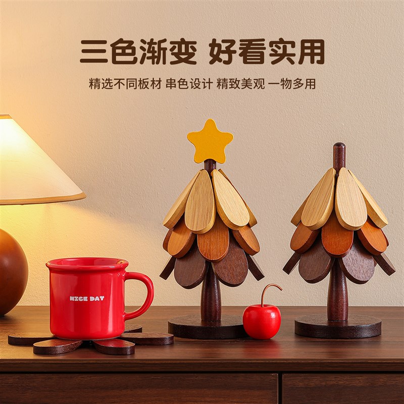 高级感圣诞树隔热垫餐桌摆件w创意一棵树实木防烫锅垫折叠杯垫碗