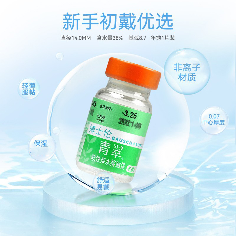 博士伦隐形近视眼镜瓶年抛青翠1片装透明低含水量正品官方旗舰店
