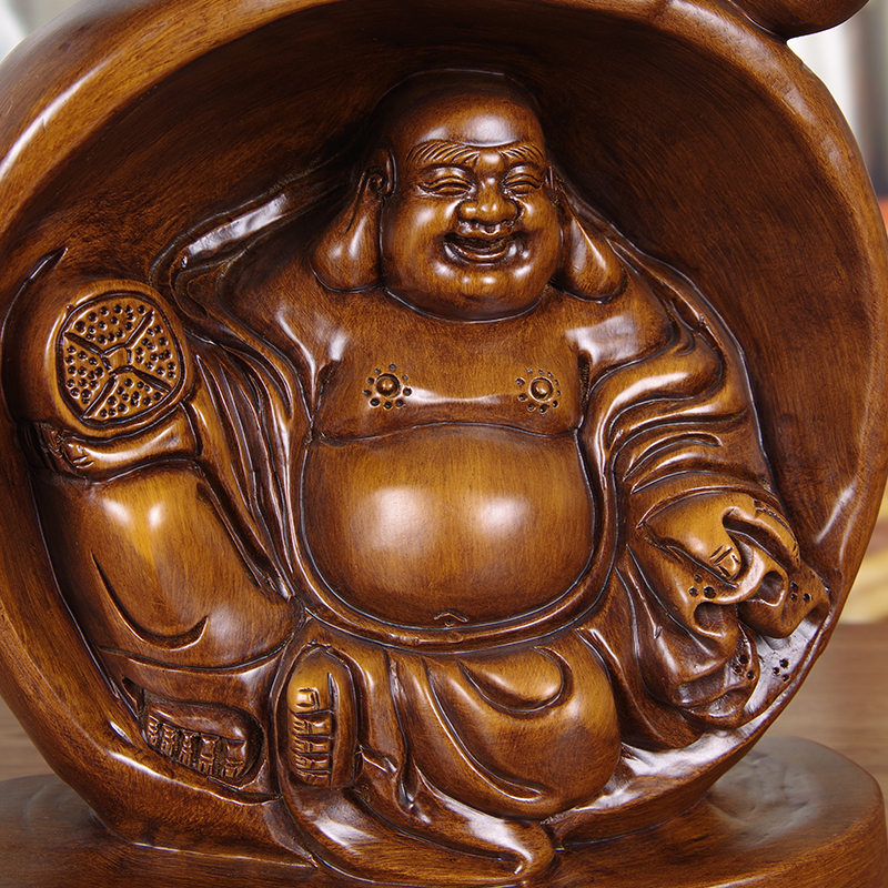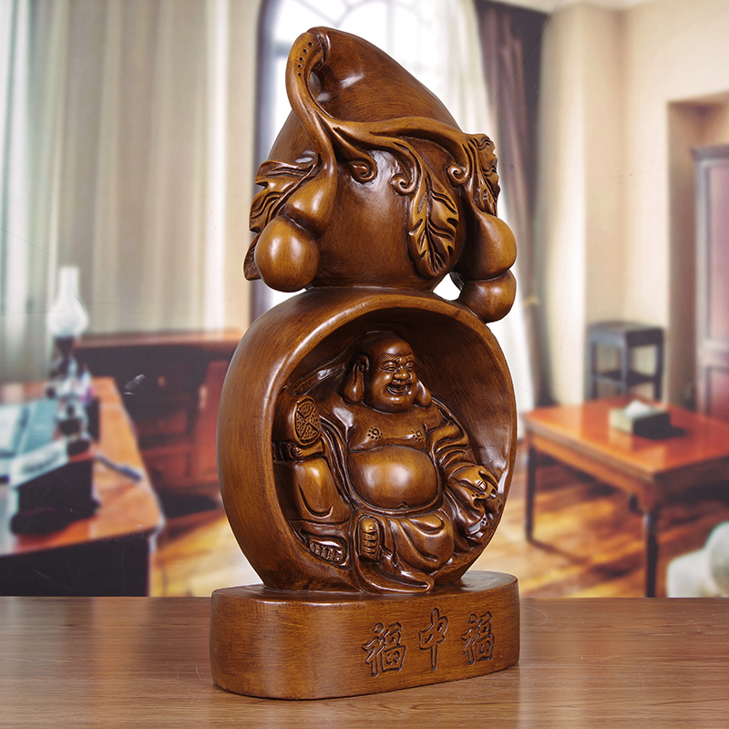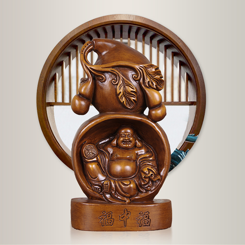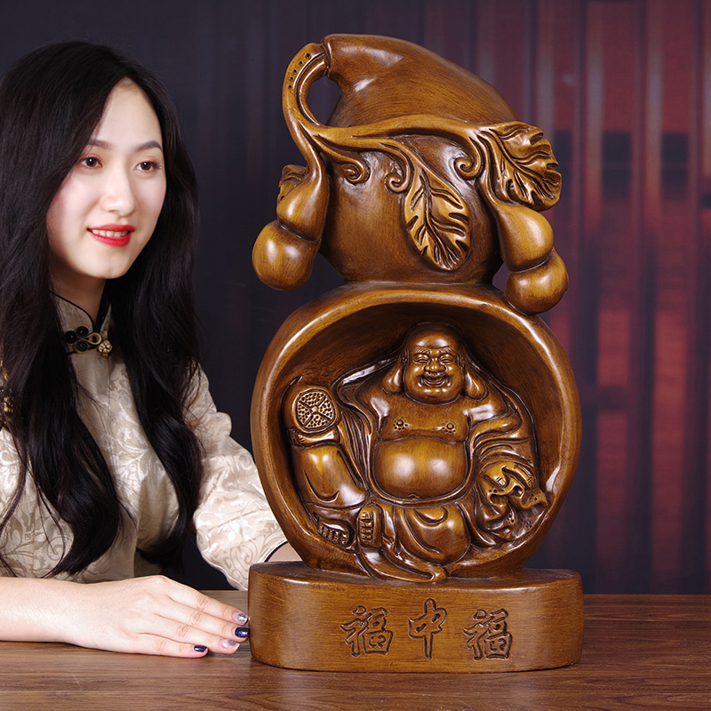 葫芦摆件实木雕弥勒佛像新中式客厅装饰工艺品送长辈创意生日礼品