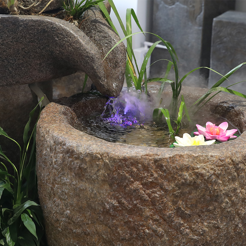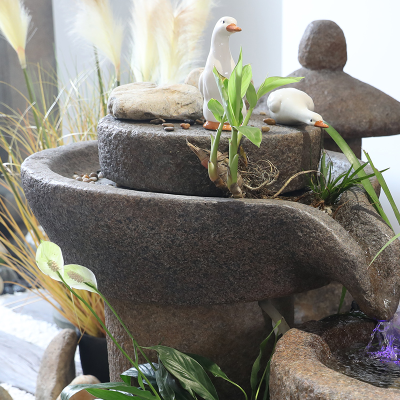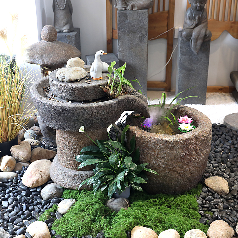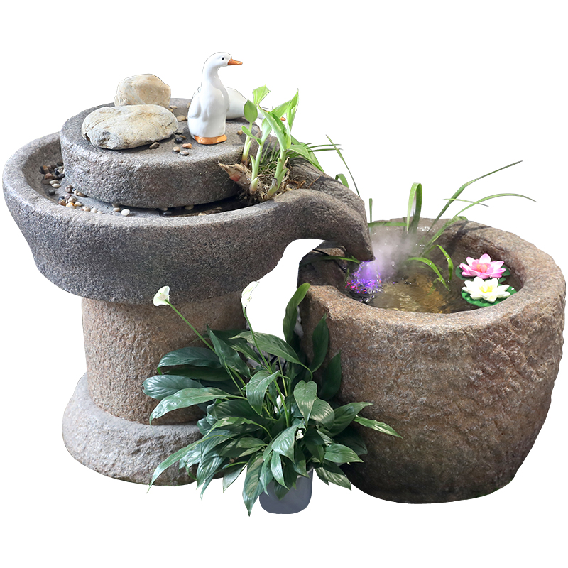 庭院花园布置石磨盘流水鱼池假山造景喷泉阳台循环水景观落地摆件