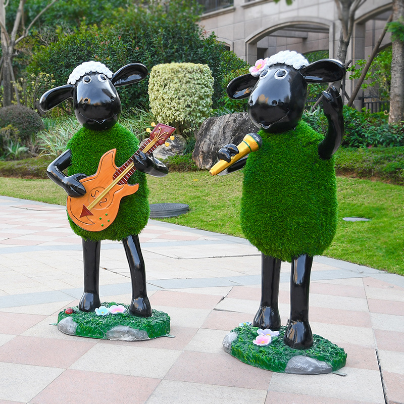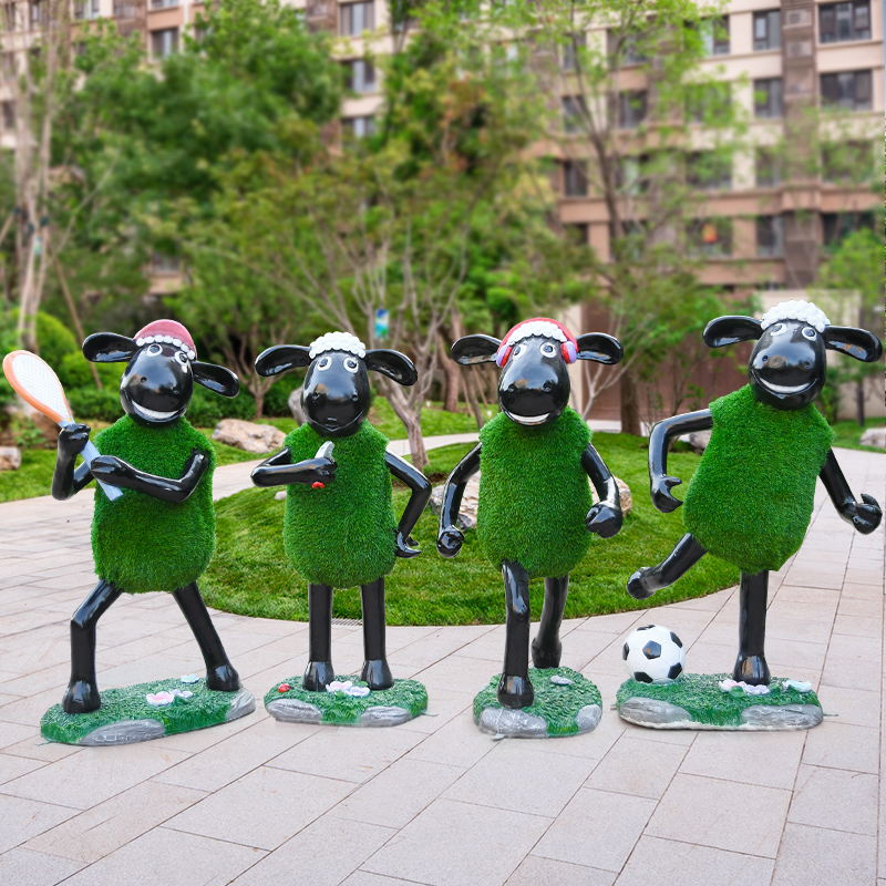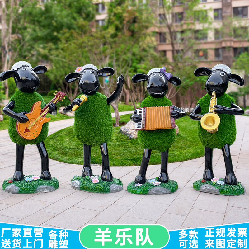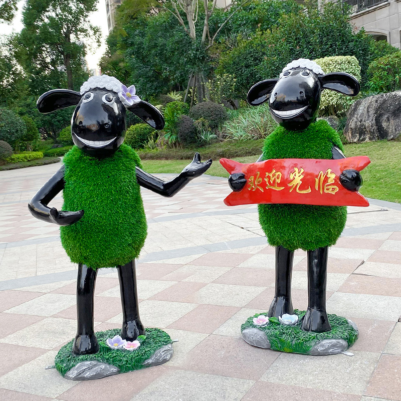 园林景观小品卡通绿植羊户外动物玻璃钢雕塑花园小区草坪装饰摆件