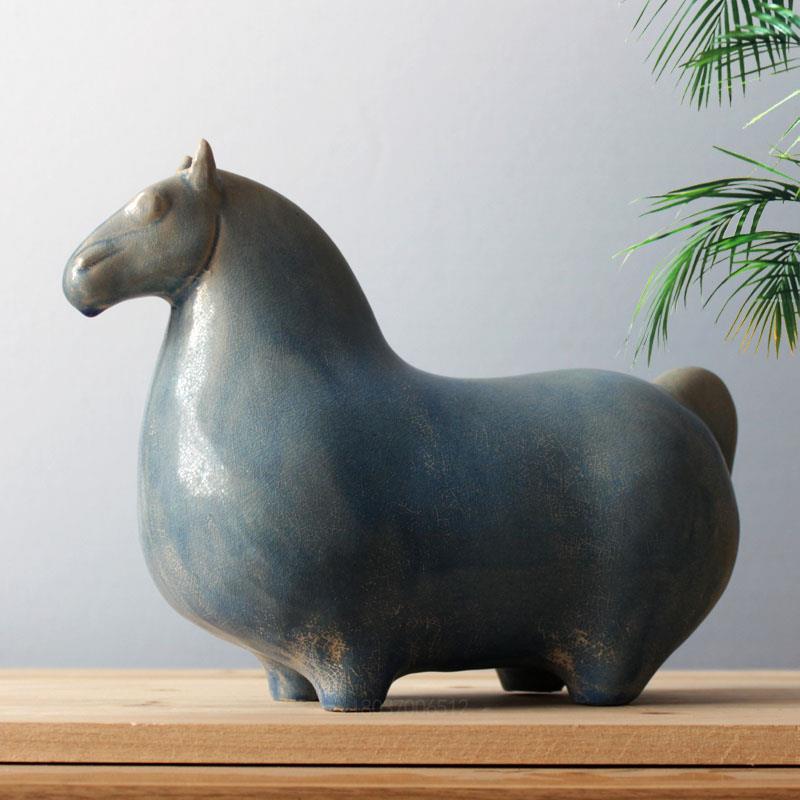 陶瓷马摆件仿古做旧短腿马抽象马家居电视柜装饰品中国风摆设礼品