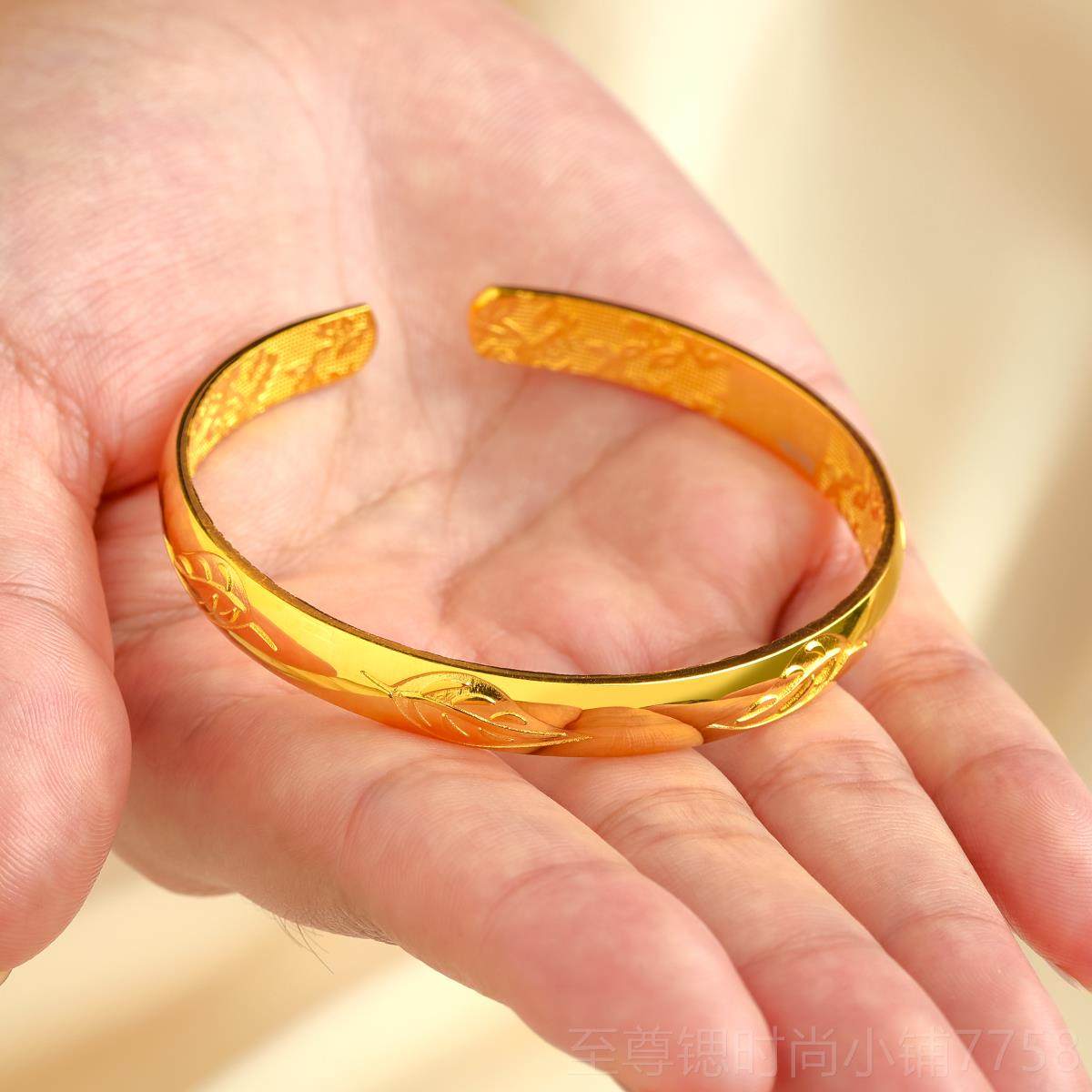 正品金金镯子妈妈款包金镀内银实心足金鳅背黄母金手镯长辈泥亲节