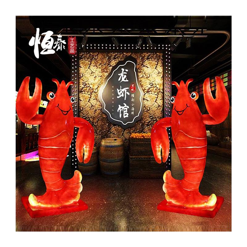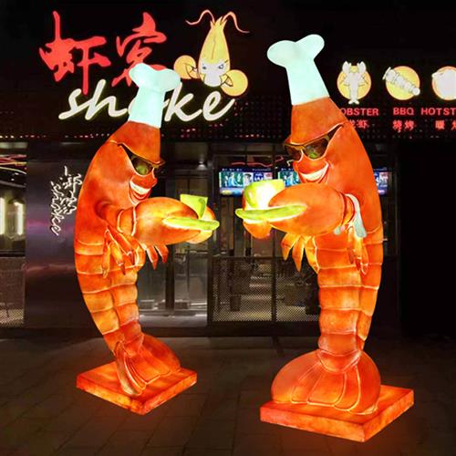 迎宾龙虾发光摆件火锅餐厅海鲜店落地雕塑门口卡通龙虾玻璃钢模型